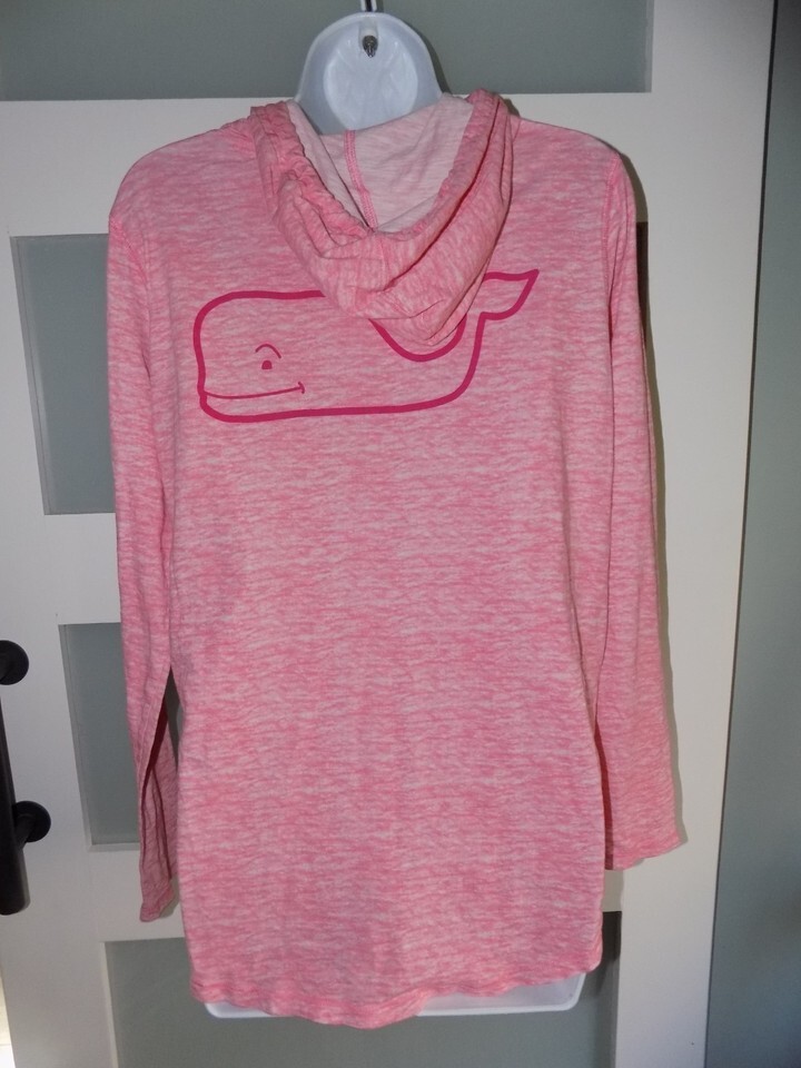 Vineyard Vines Pink Heathered Whale Logo LS Hoodie Shirt Size M Women's