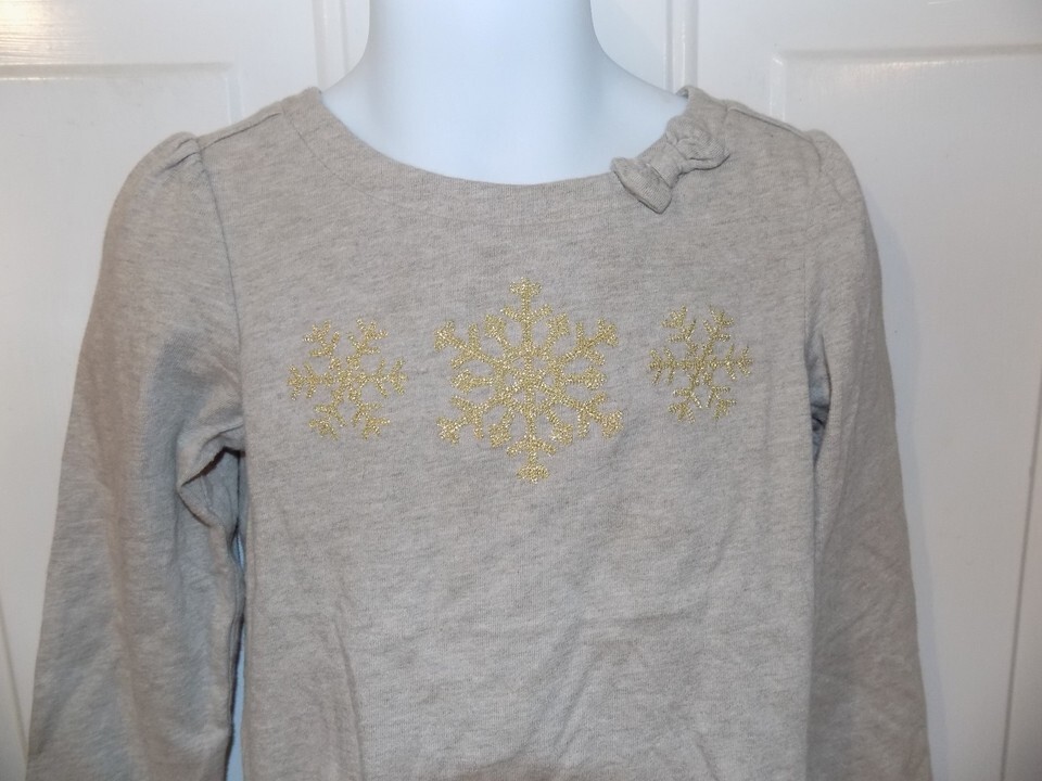 JANIE AND JACK BROWN LONG SLEEVE SHIRT GOLD SNOWFLAKE SIZE 3 GIRL'S EUC HTF