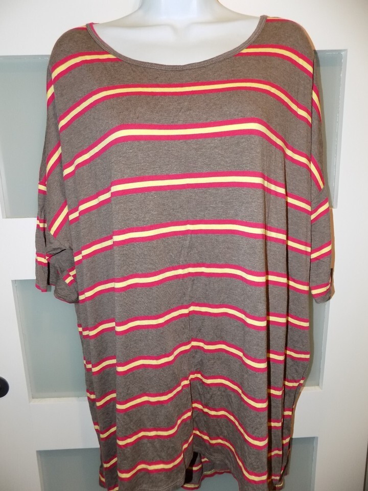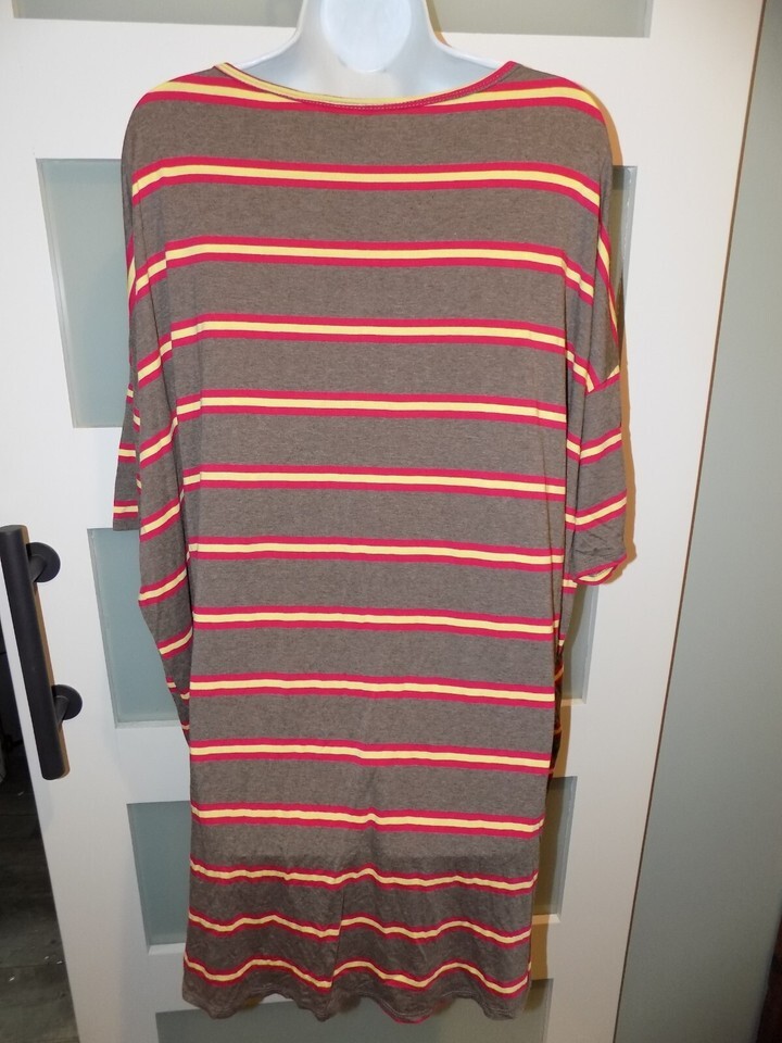 LuLaRoe Irma Striped Brown/Red/Yellow Print Size XL Women's NWOT