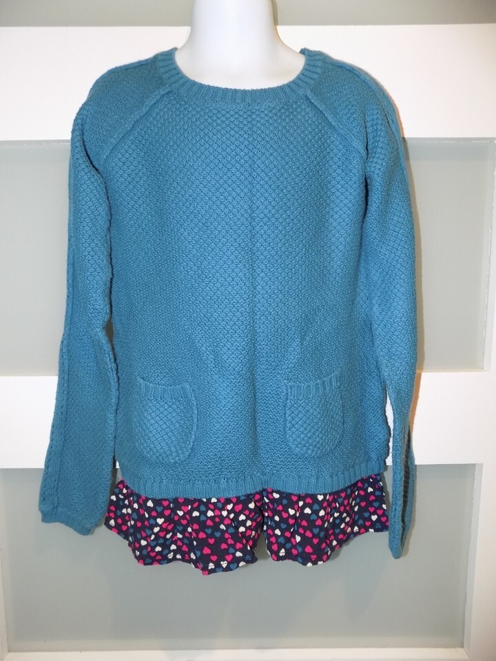 TUCKER + TATE Blue Sweater Top w/ Heart Ruffle Bottom Size 7 Girl's