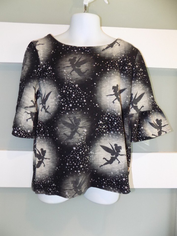 Gap Kids Disney Black Tinkerbell Print Bell-Sleeve Shirt Size S Girl's