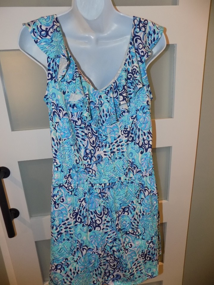 Lilly Pulitzer Alessa Romper Multi Light Aqua Spritz Size S Women's NEW