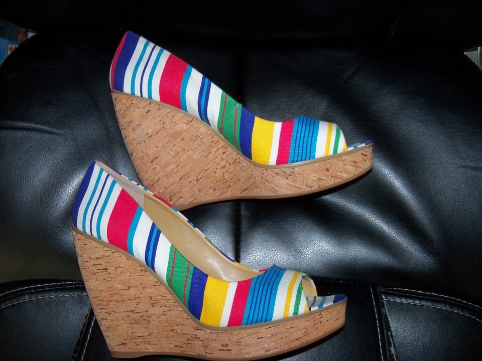 Nine West Wild Thingo Multi-Colored Striped Wedges Heels Shoes Size 8 1/2 EUC