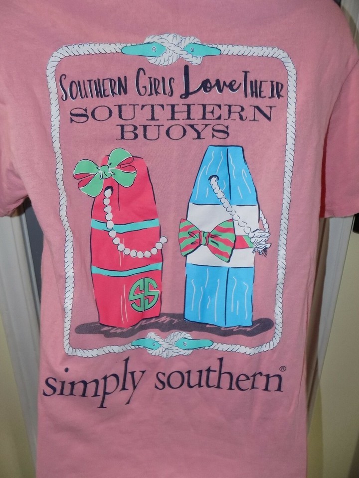 Simply Southern Southern Girls Love Their Southern Buoys Pink T-Shirt Size S EUC