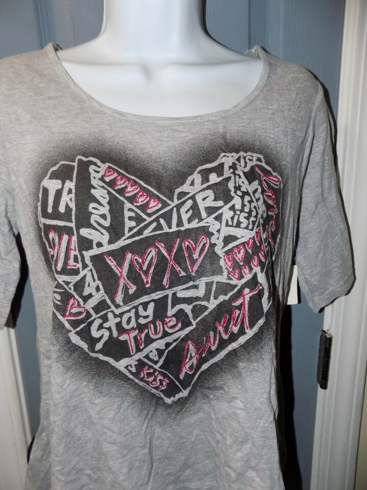 Jerry Gray Stay True/XOXO/Love Gray T-shirt Size M Women's NEW