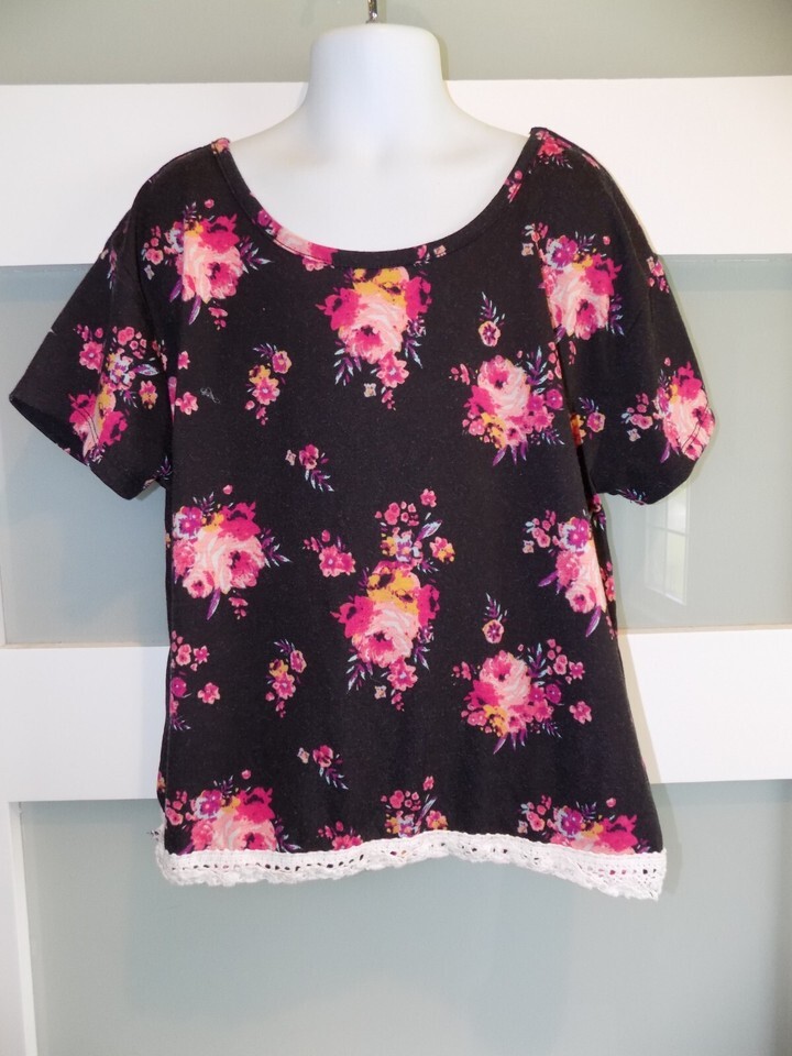 Mudd Floral Black Cropped SS Shirt Size 12 and 46 similar items