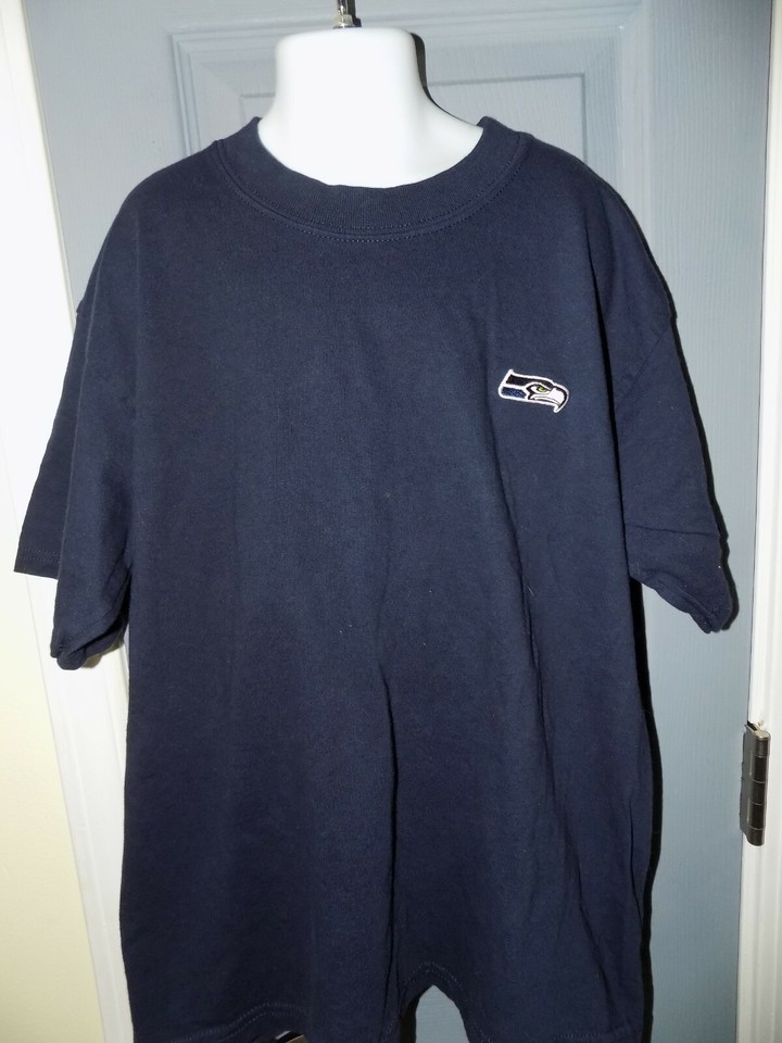 Seattle Seahawks NFL Navy Blue Short Sleeve Shirt Size L (14/16) Kids EUC