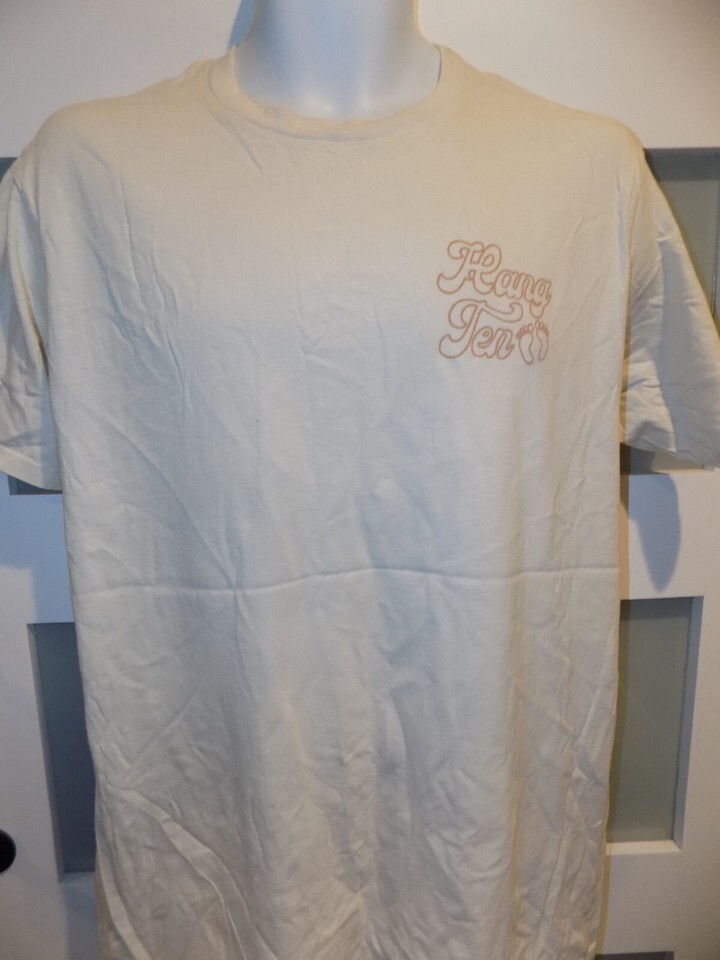 Vintage HANG TEN Feet Logo Cream SS T-Shirt Retro Surfer 70โs Surf Size L Men's
