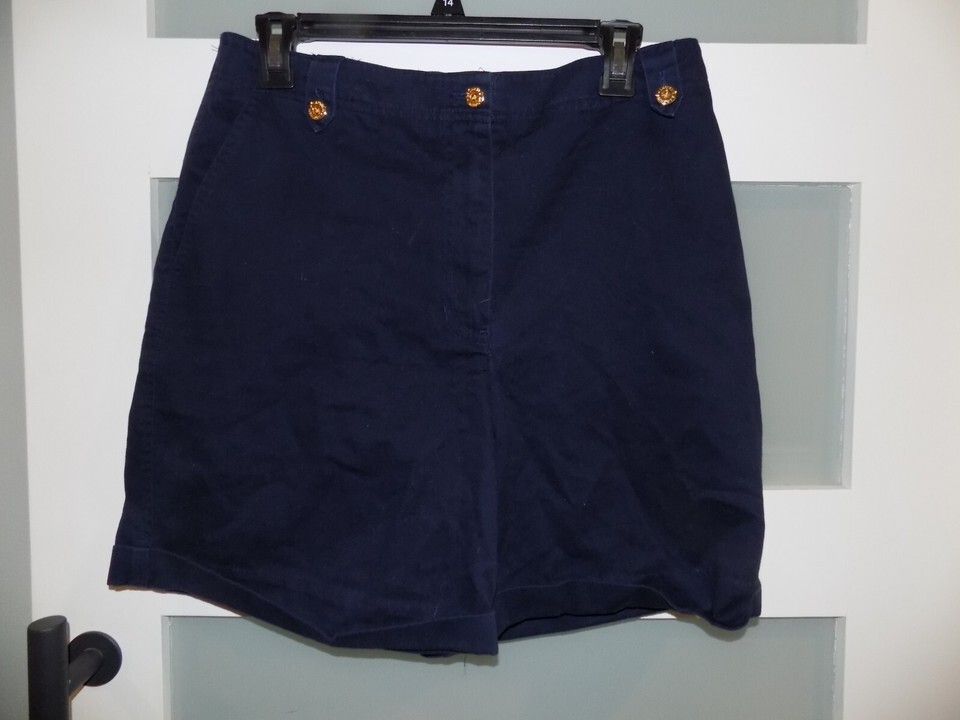 Lauren Ralph Lauren Navy Blue Gold Buttons Cuffed Casual Shorts Size 10 Women's