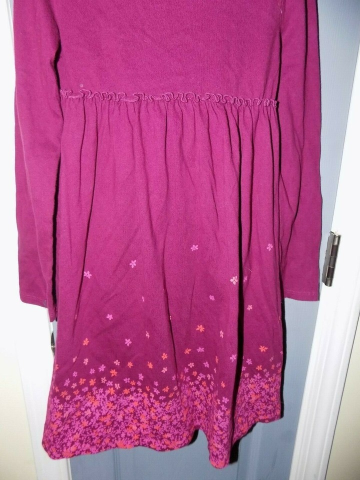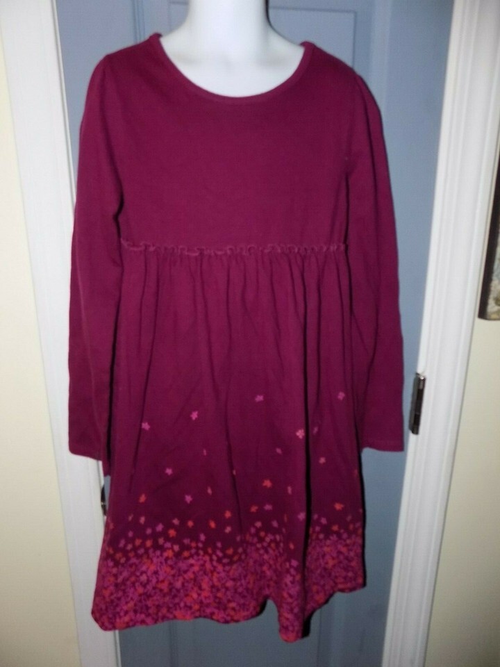 L.L. Bean Long Sleeve Burgundy W/Flower Print Dress Size 8 Girl's EUC
