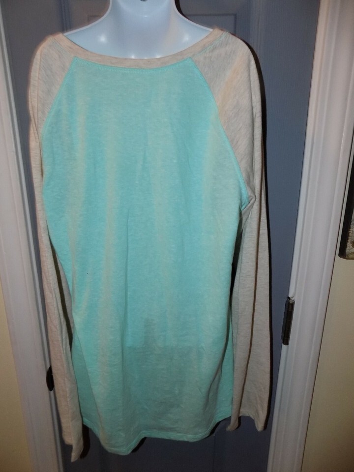 Justice Heathered Gray/Aqua Long Sleeve Shirt Size 16 Girl's EUC