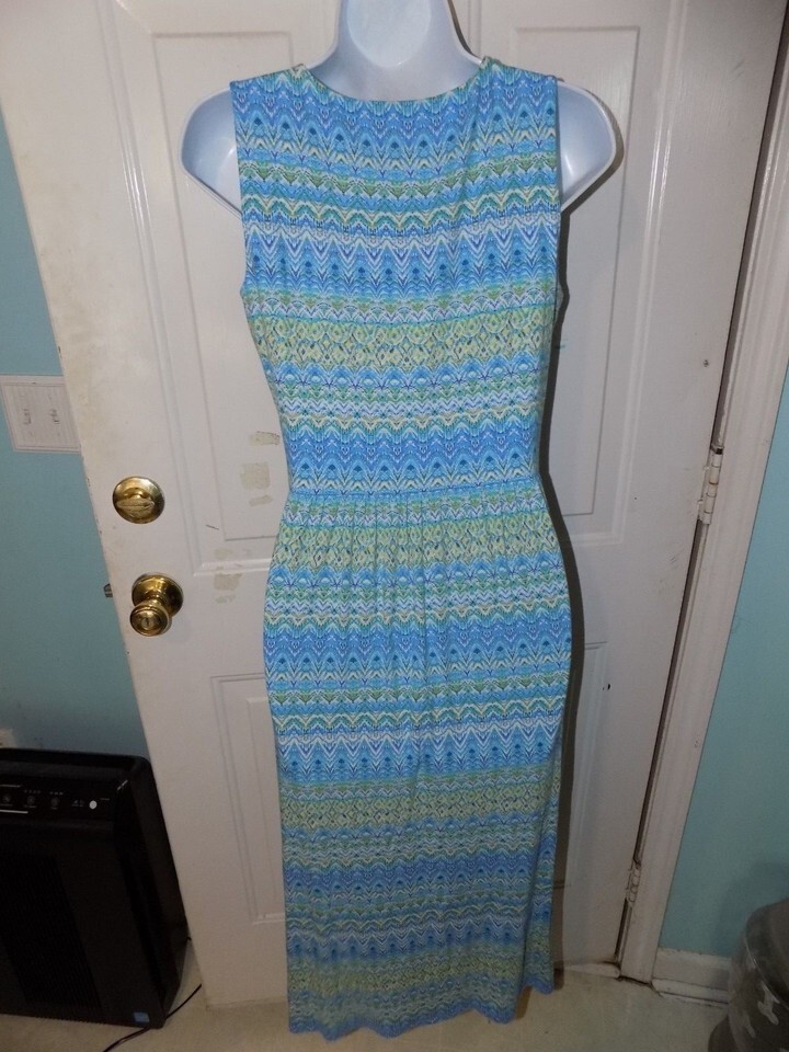 J Jill Faux Wrap Maxi Dress Blue Multi-Color Print Sleeveless Size PS Women's