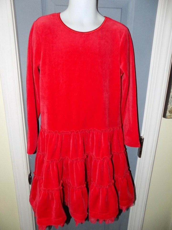 HANNA ANDERSSON Red Long Sleeve Ruffle Skirt Velvet Dress Size 120 Girl's EUC