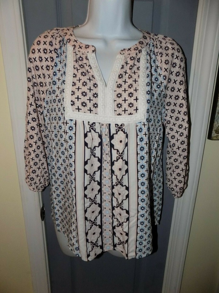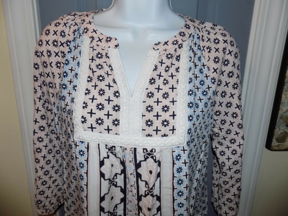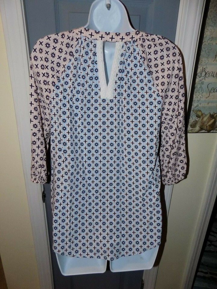 Crown & Ivy Peasant Pink/Blue 3/4 Sleeve Blouse Size PS Women's NWOT
