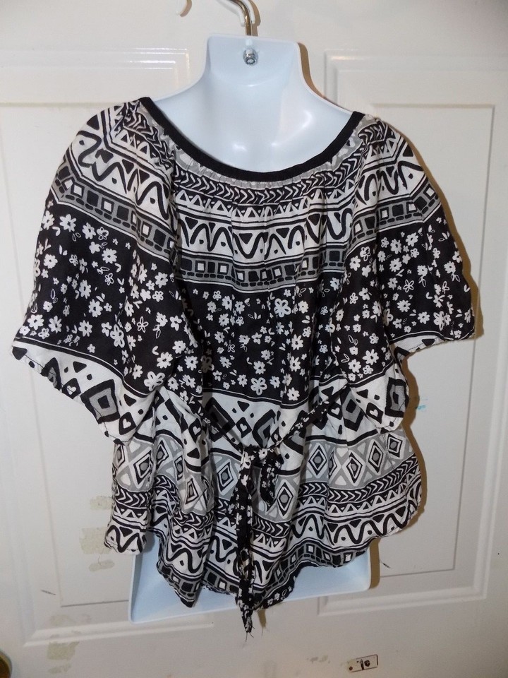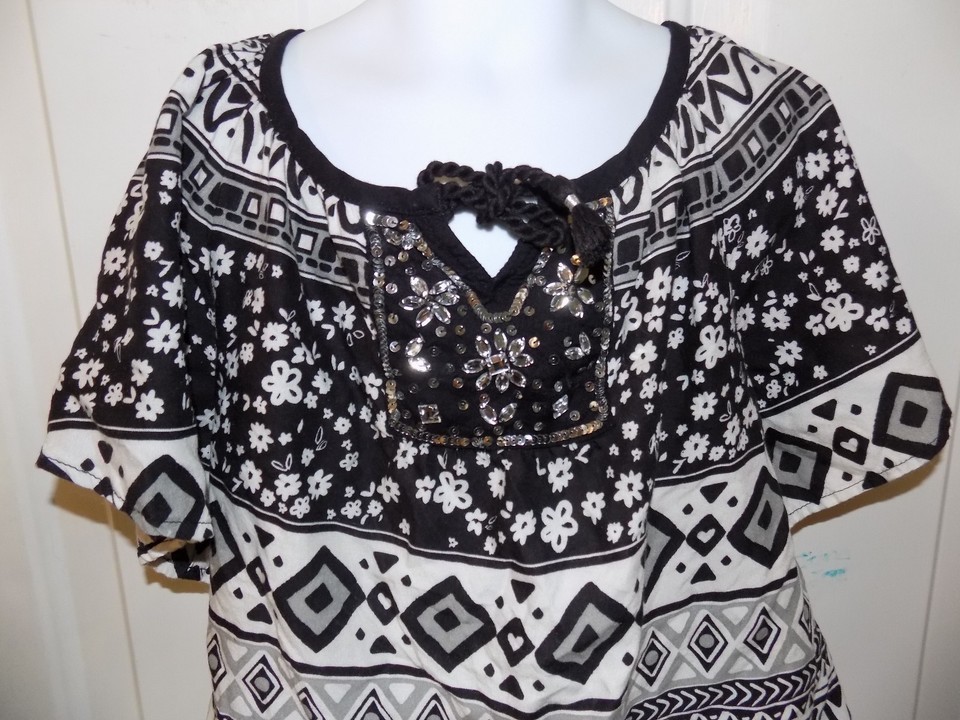 Justice Black White Bling Tie Back Short Sleeve Shirt Size 7 Girl's EUC