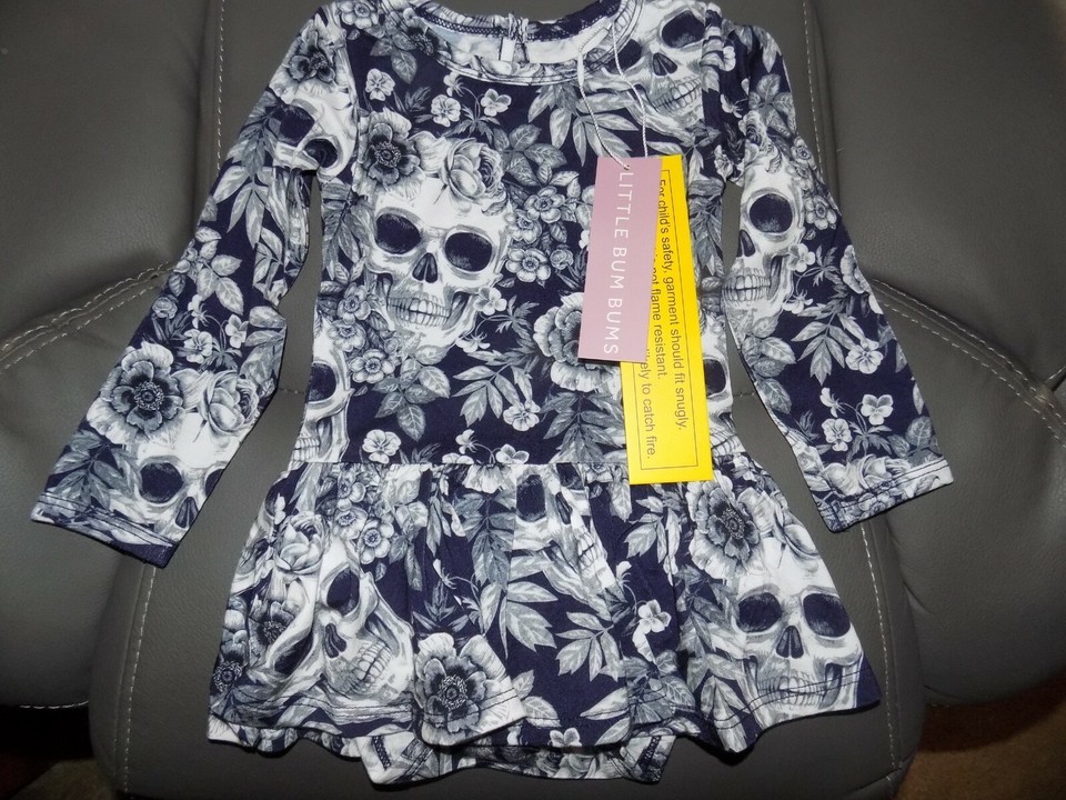 LITTLE BUM BUMS SKELETONS IN THE CLOSET RUFFLE DRESS SIZE 12/18 MONTHS NEW