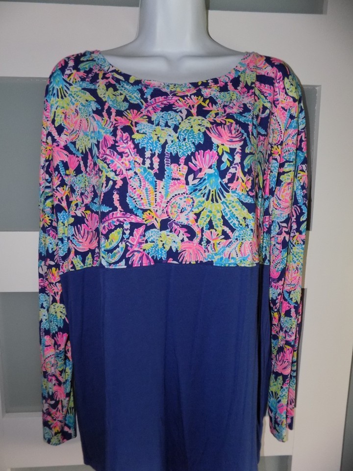 Lilly Pulitzer Oyster Bay Navy Seen And Herd Finn Top Size XL Women's