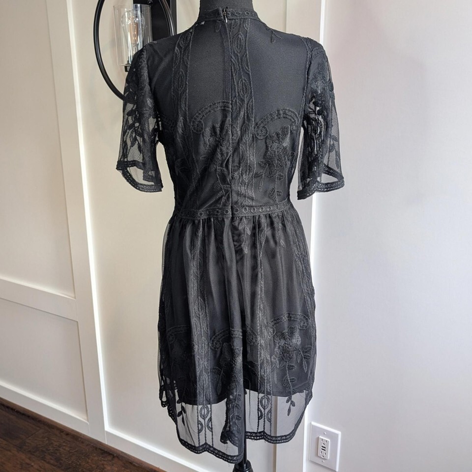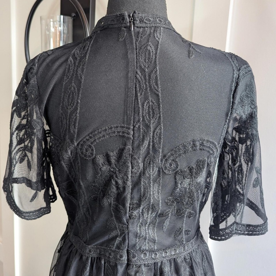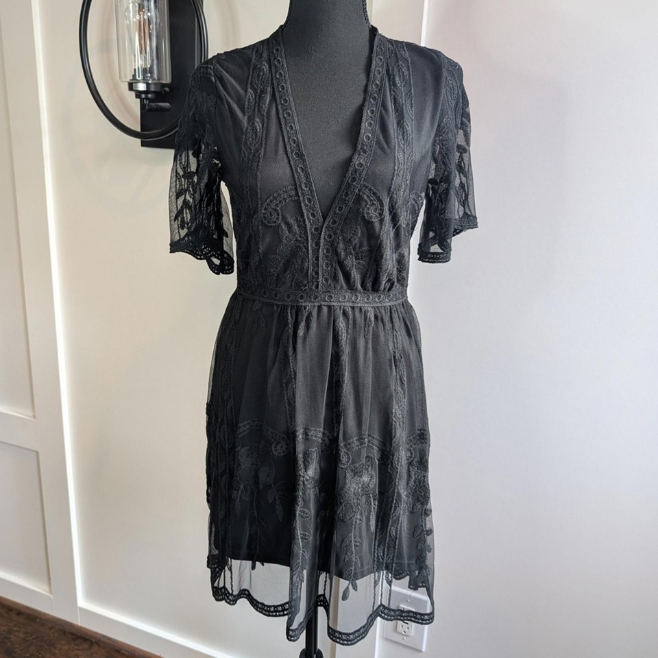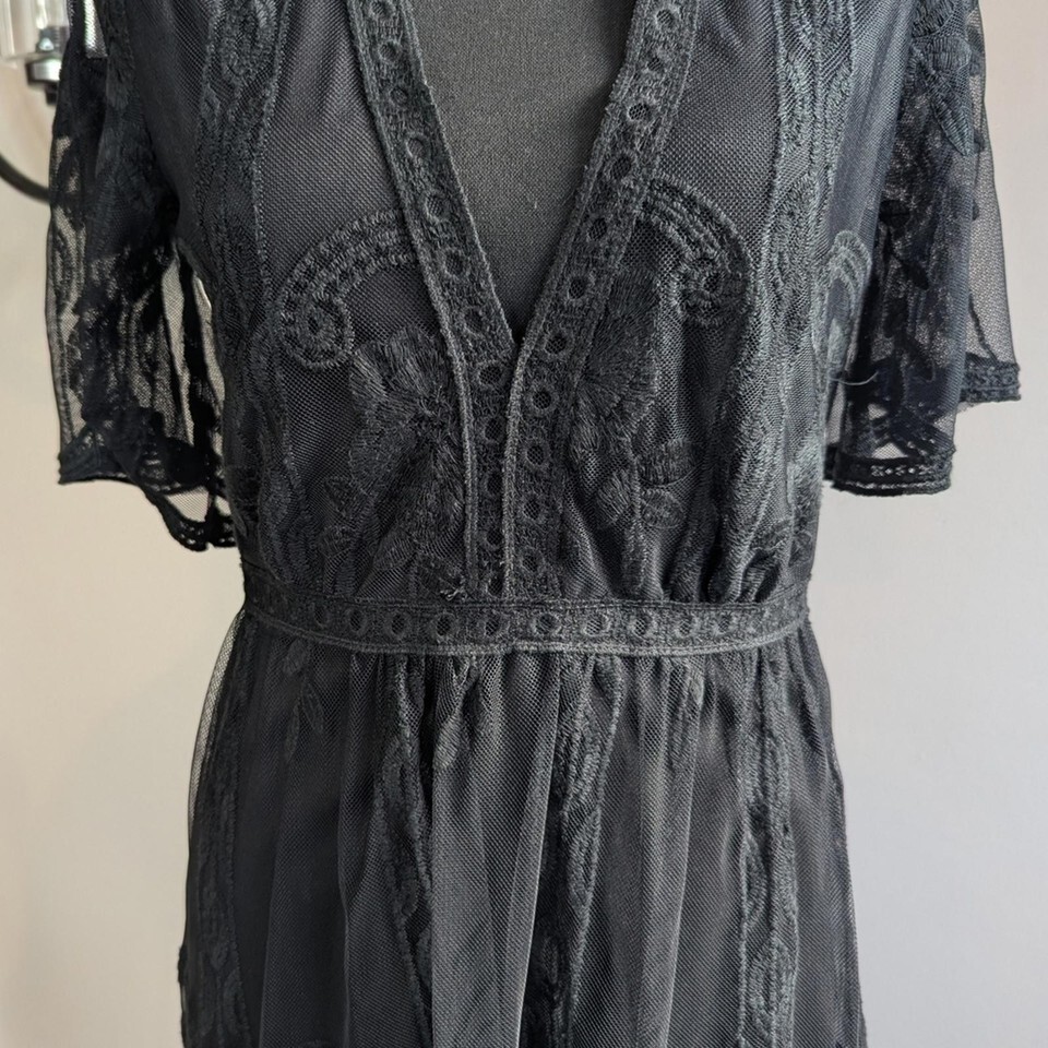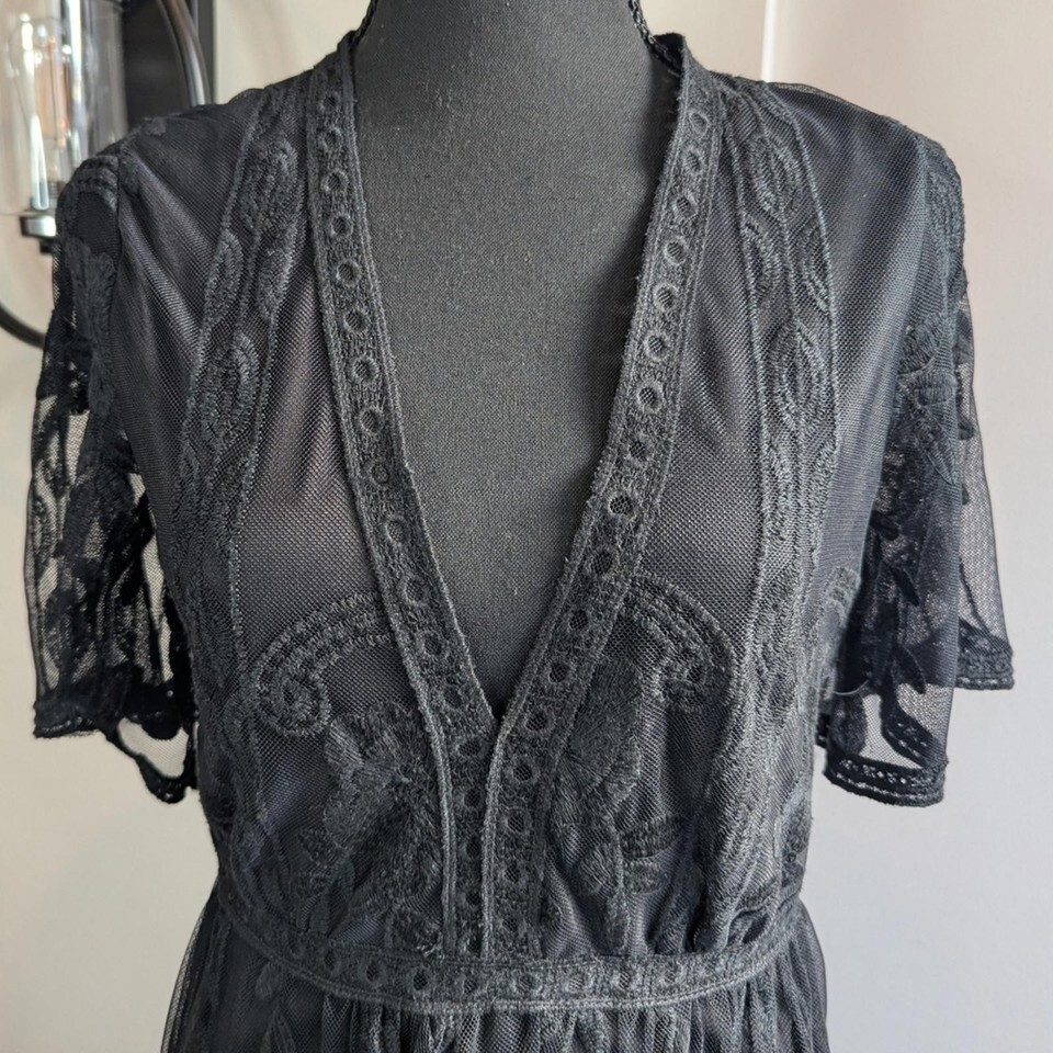 Haute Monde Women’s Black Lace Sheer V-Neck Dress Size Medium