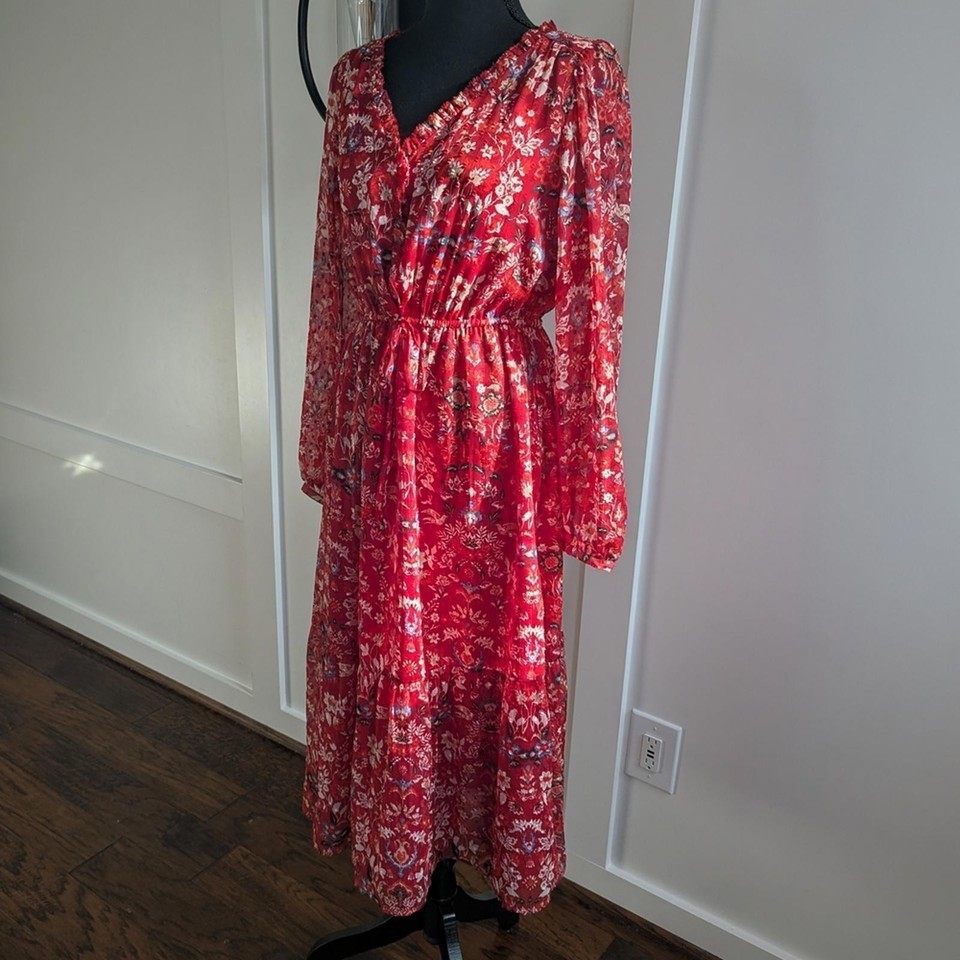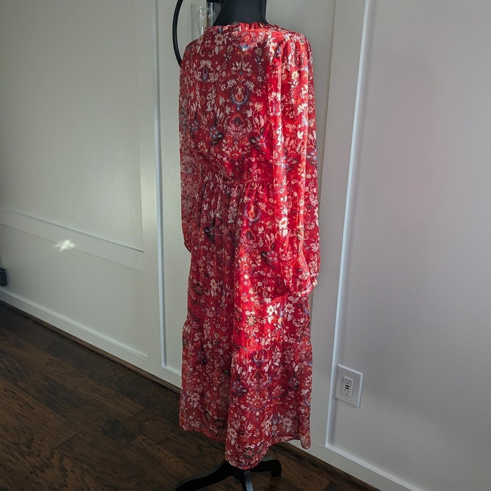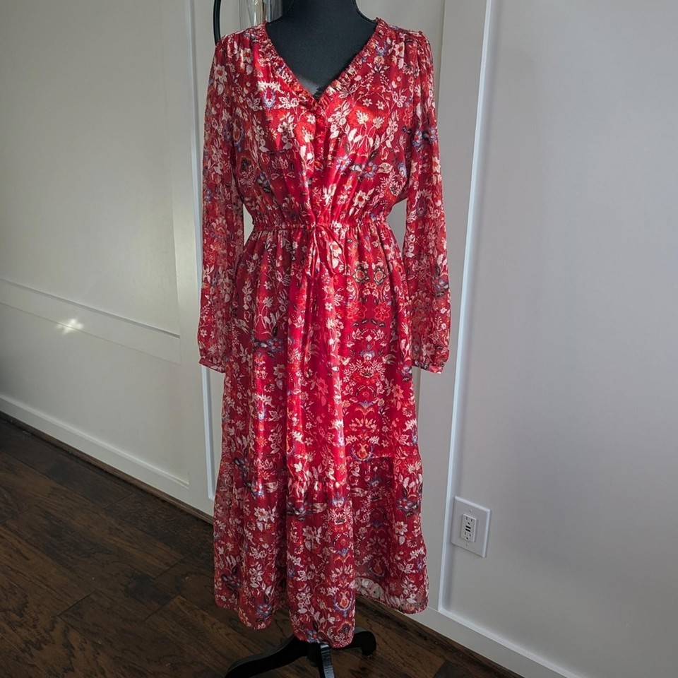 LOFT Women’s Red Floral Long Sleeve Maxi Dress Size Medium