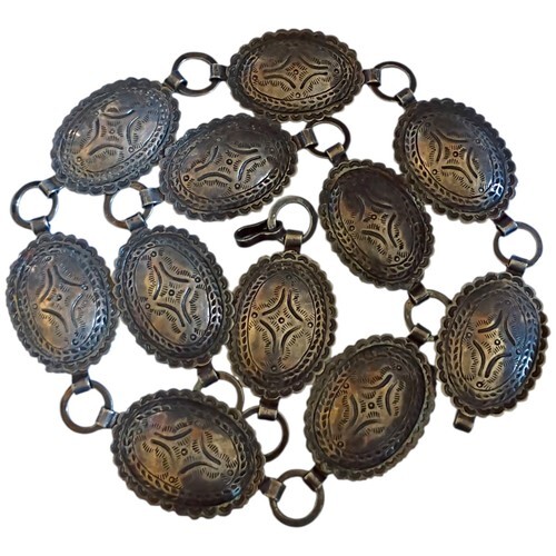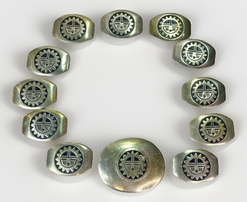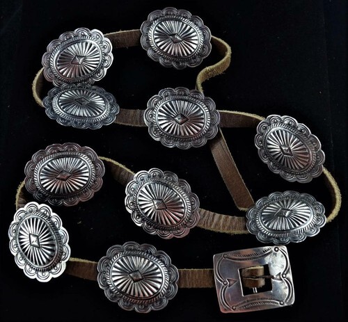 Unsigned Silver Concho Belt w/ 12 Silver Sunburst Elements Nice Patina!