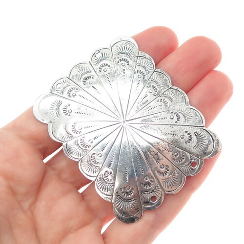 Silver Concho Belt w/ 21 Silver Sunburst Elements Nice Patina! Signed DM