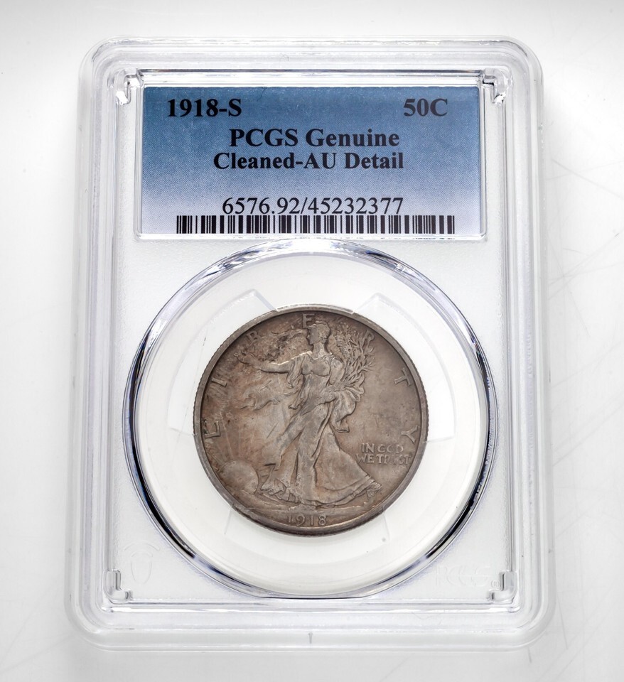 1918-S 50C Liberty Walking Half Dollar PCGS Graded As Genuine Cleaned-AU Detail