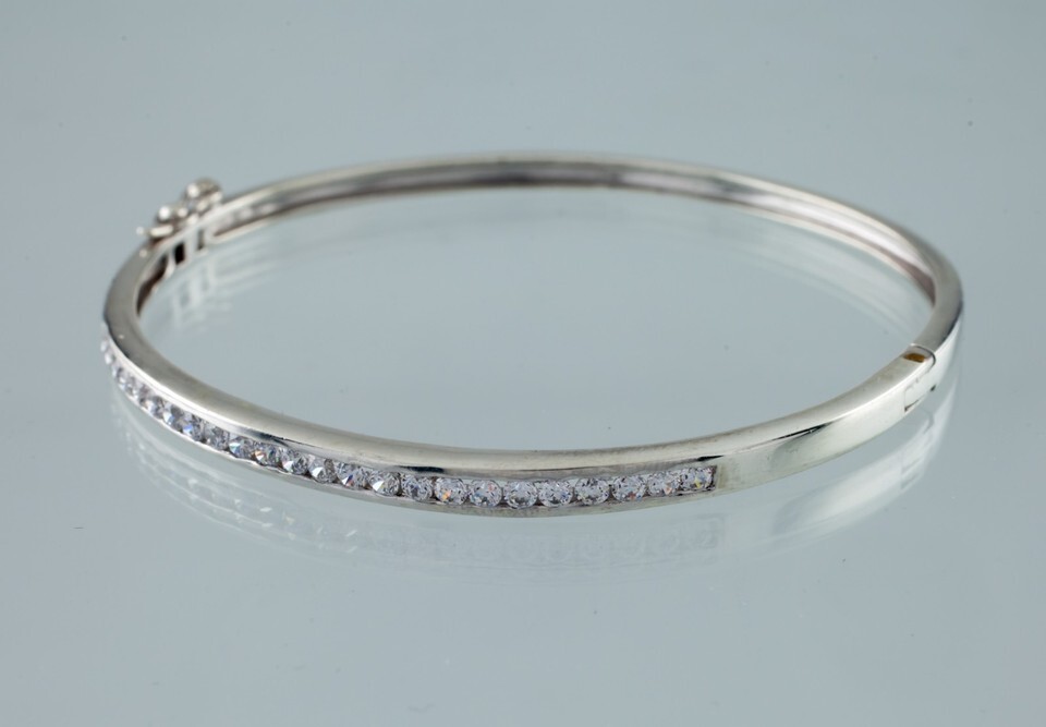 Sterling Silver Bangle w/ Channel Set Round Cubic Zirconias Gorgeous!
