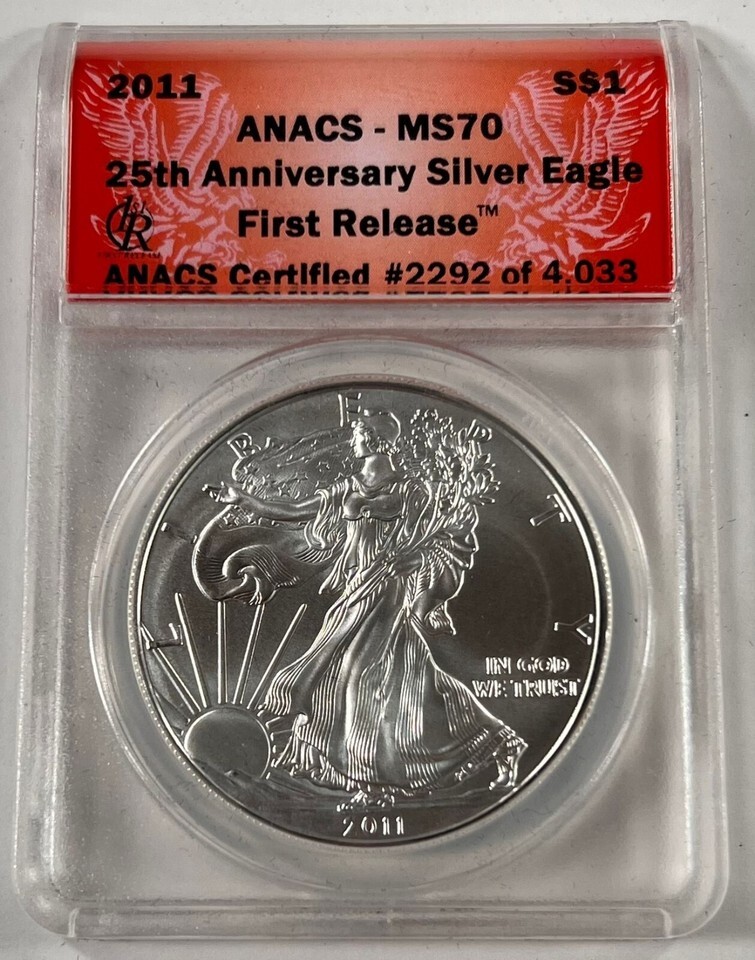 2011 $1 Silver American Eagle Graded by ANACS as MS-70 First Release 25th Anniversary