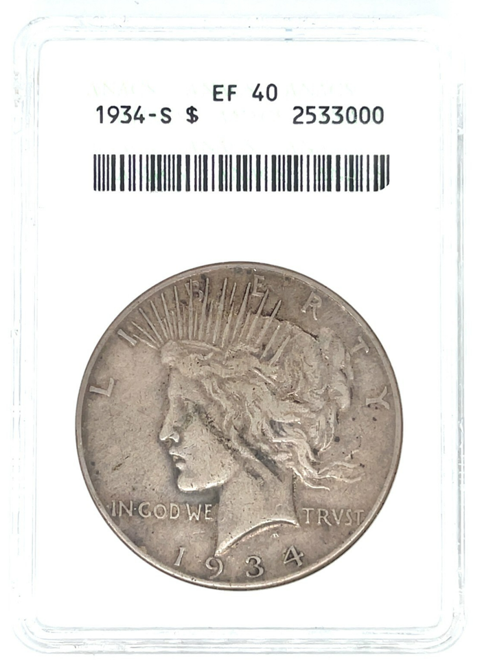 1934-S Peace Dollar ANACS Extra Fine XF40 Old Holder