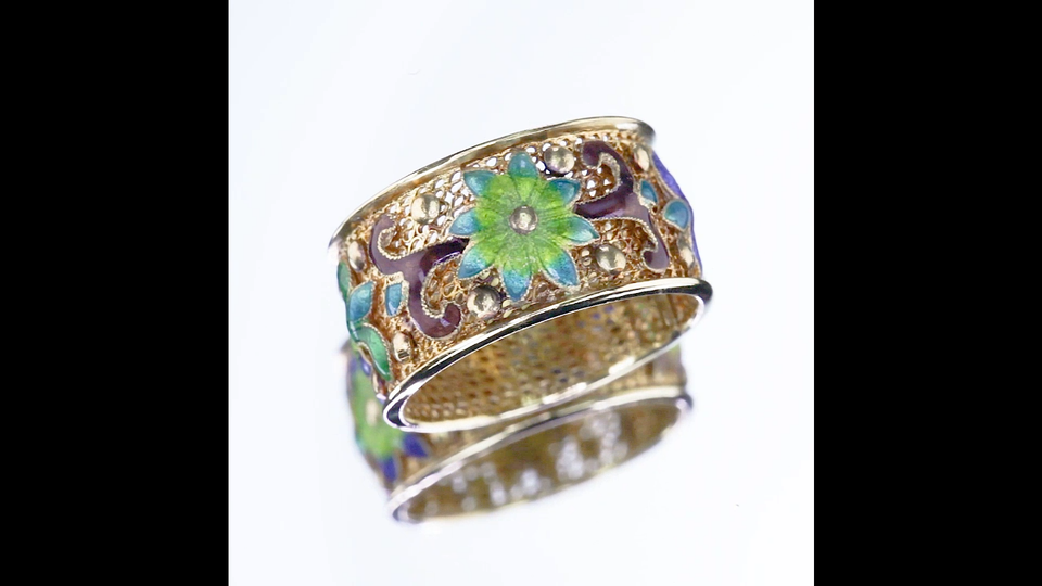 Gorgeous 14k Yellow Gold Hand-Made Band Mesh Ring w/ Gorgeous Enamel Detail Sz 6