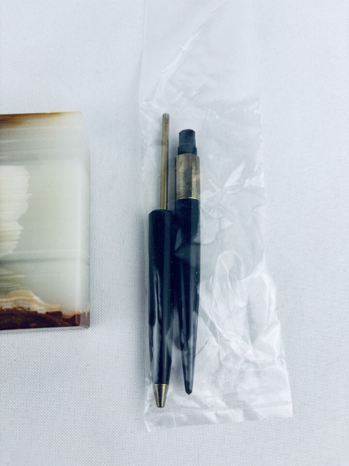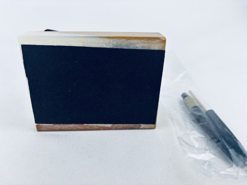 Vintage Marble Base Desktop Pen Holder Single Rectangle Felt Bottom With Pen