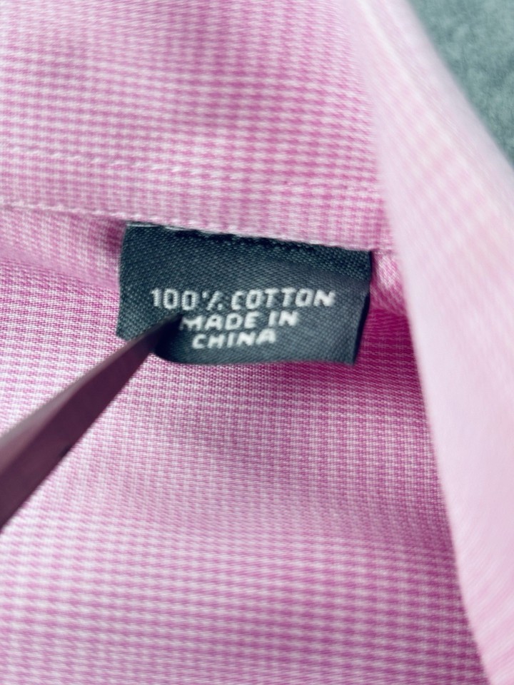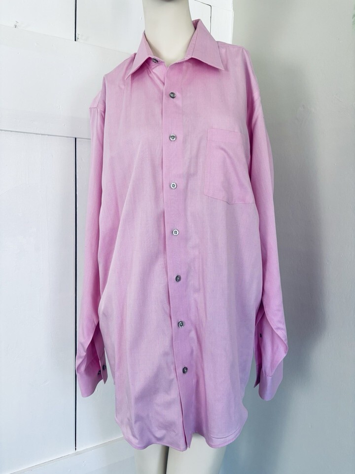 Kenneth Cole Reaction Dress Shirt 16-16 1/2 34/35 Large Pink Windowpane Non Iron