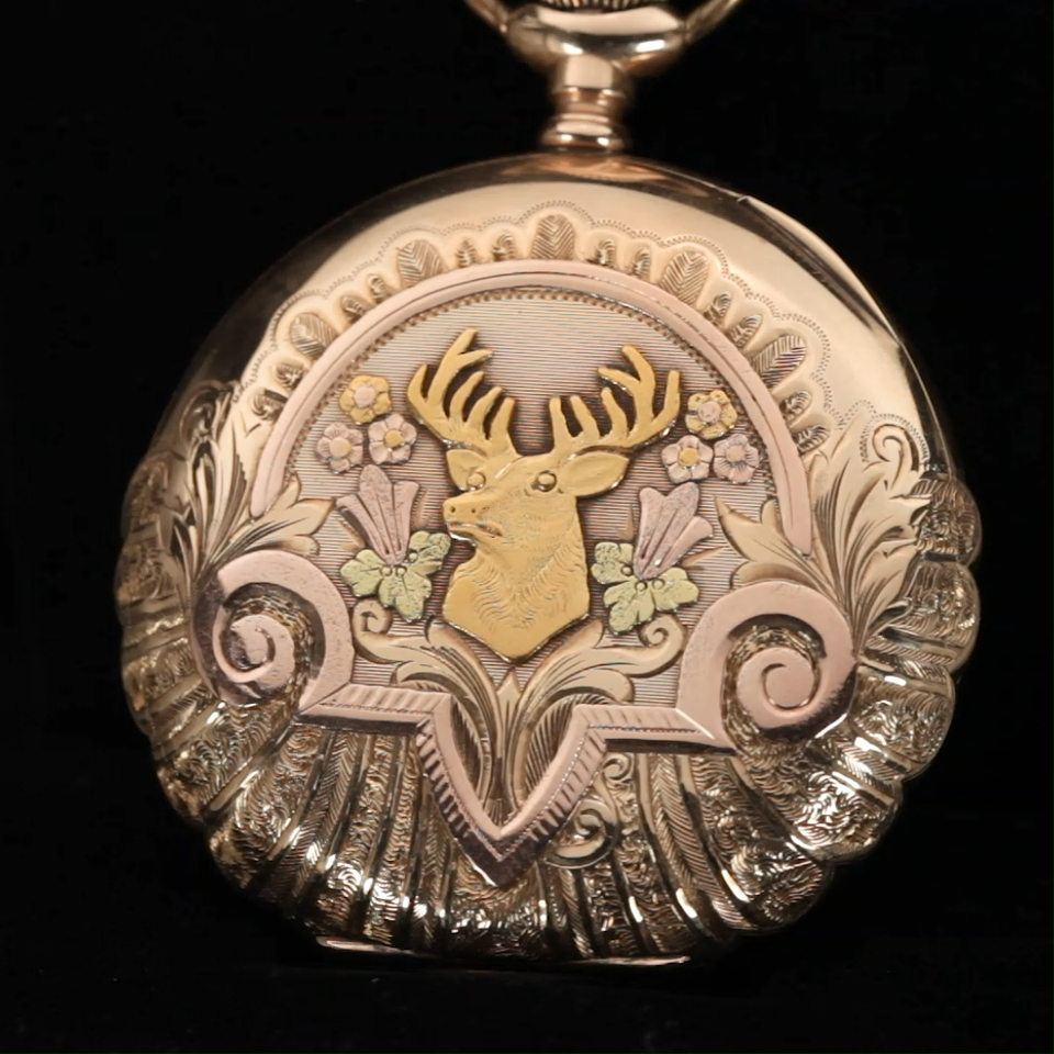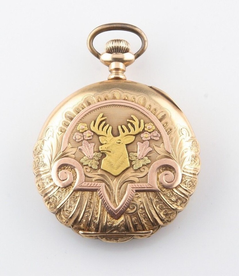 Elgin 14k Multi-color Gold 17-Jewel Antique Pocket Watch Size 16s Full Hunter