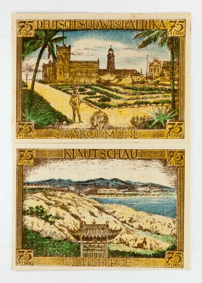 Features scenes from: Swakopmund, German South West Africa; Iltisberge, China; Viktoria mit Kamerunberg, Cameroon; Kaiser-Wilhelmsland, German South Seas; Dorf Bei Missahohe, Togo; Daressalam, German East Africa