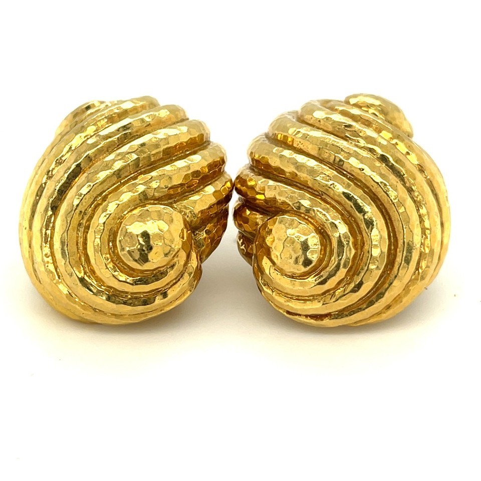 David Webb 18k Yellow Gold Hammered Swirl Earclips Gorgeous!