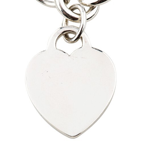 Tiffany Co. Sterling Silver Blank Heart Tag Charm Bracelet 7.25"