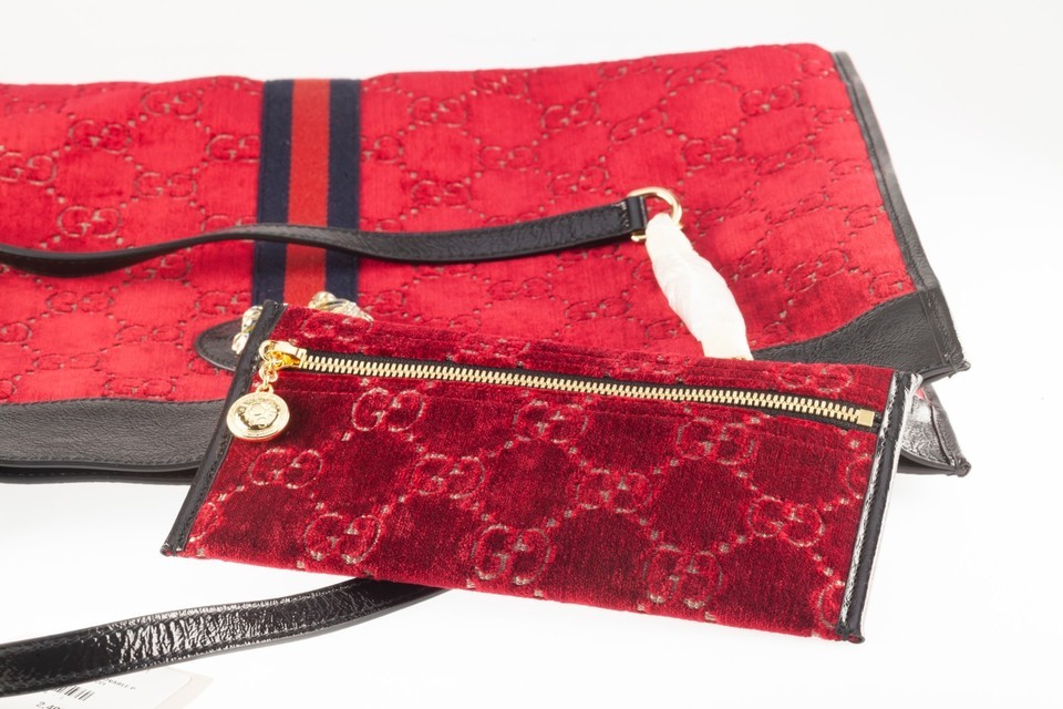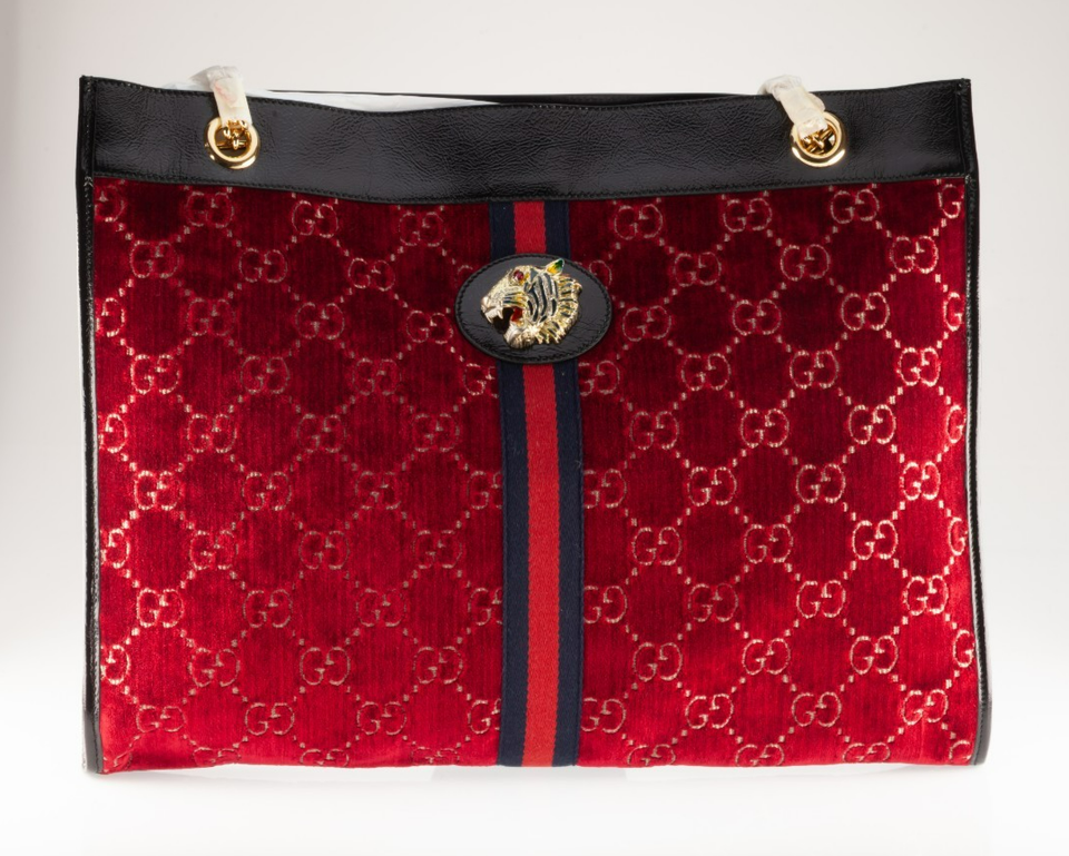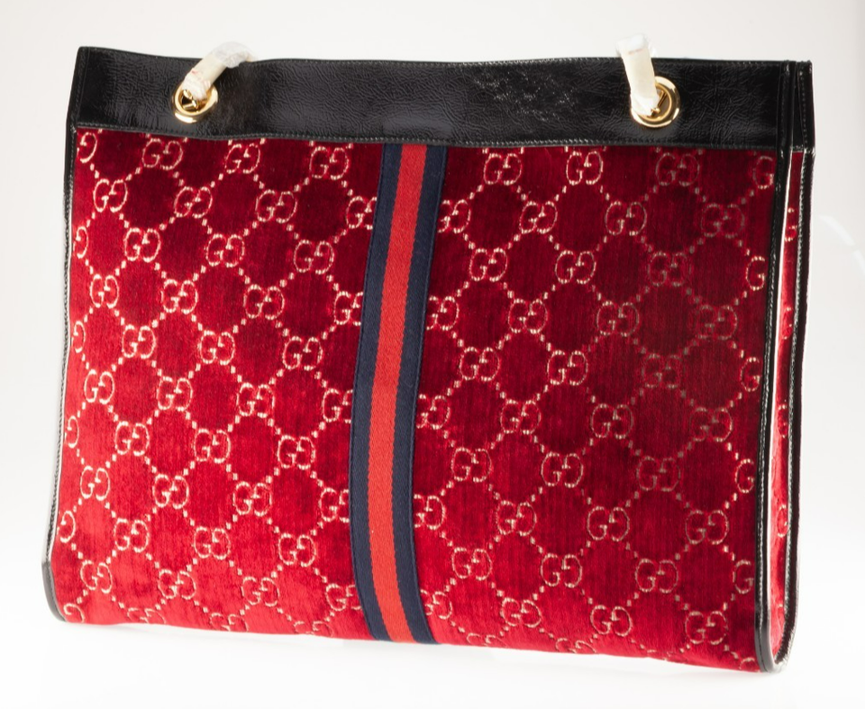 Authenticity Guarantee Gucci Large Rajah Tote Bag in Red Velvet with Box Dus...