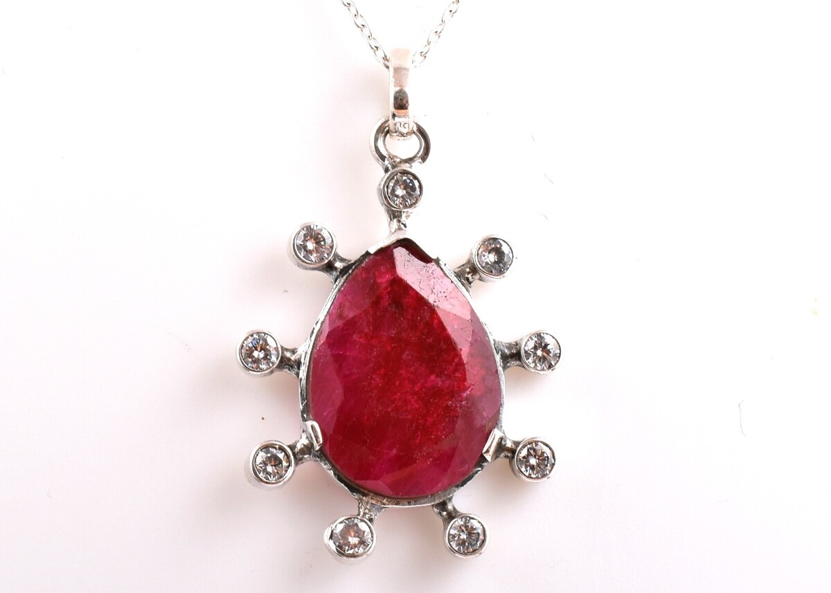 Handmade 925 Silver Emerald, Ruby, Sapphire Gems. Unisex Pendent Necklace