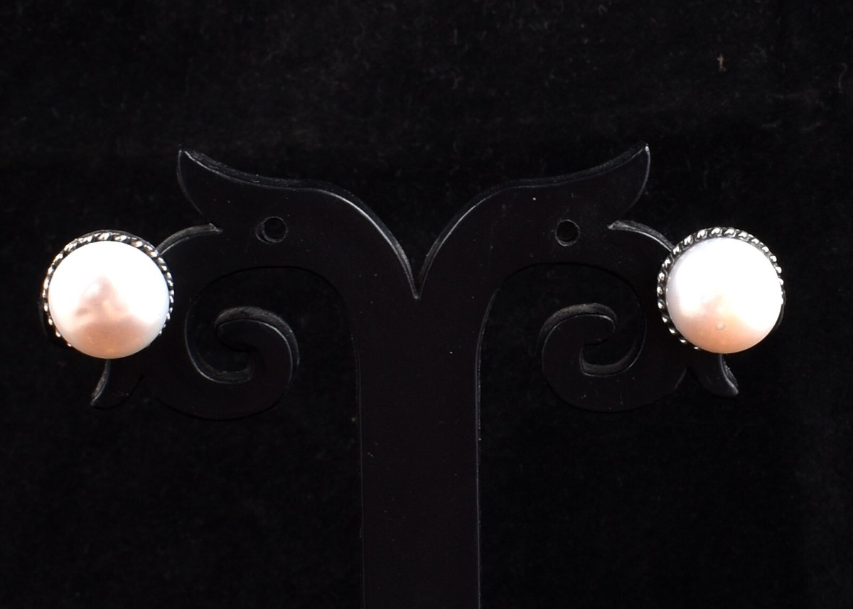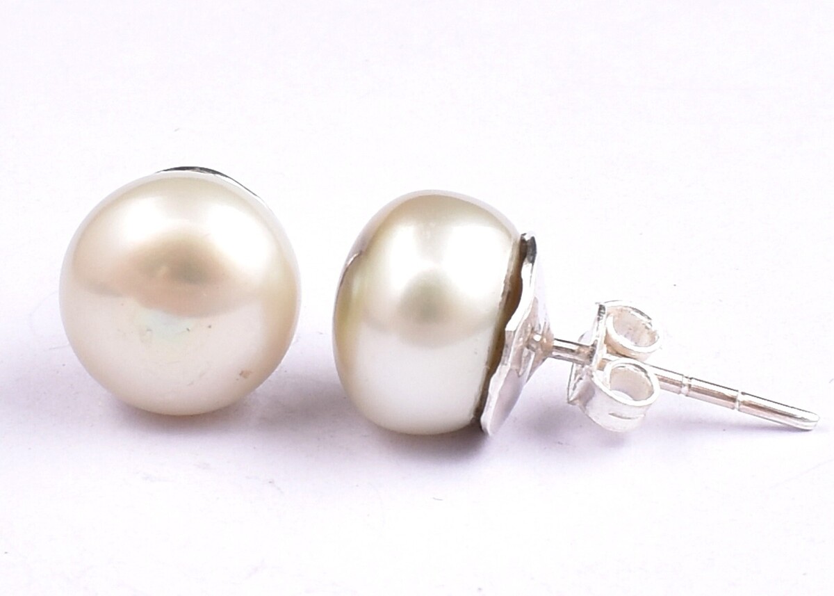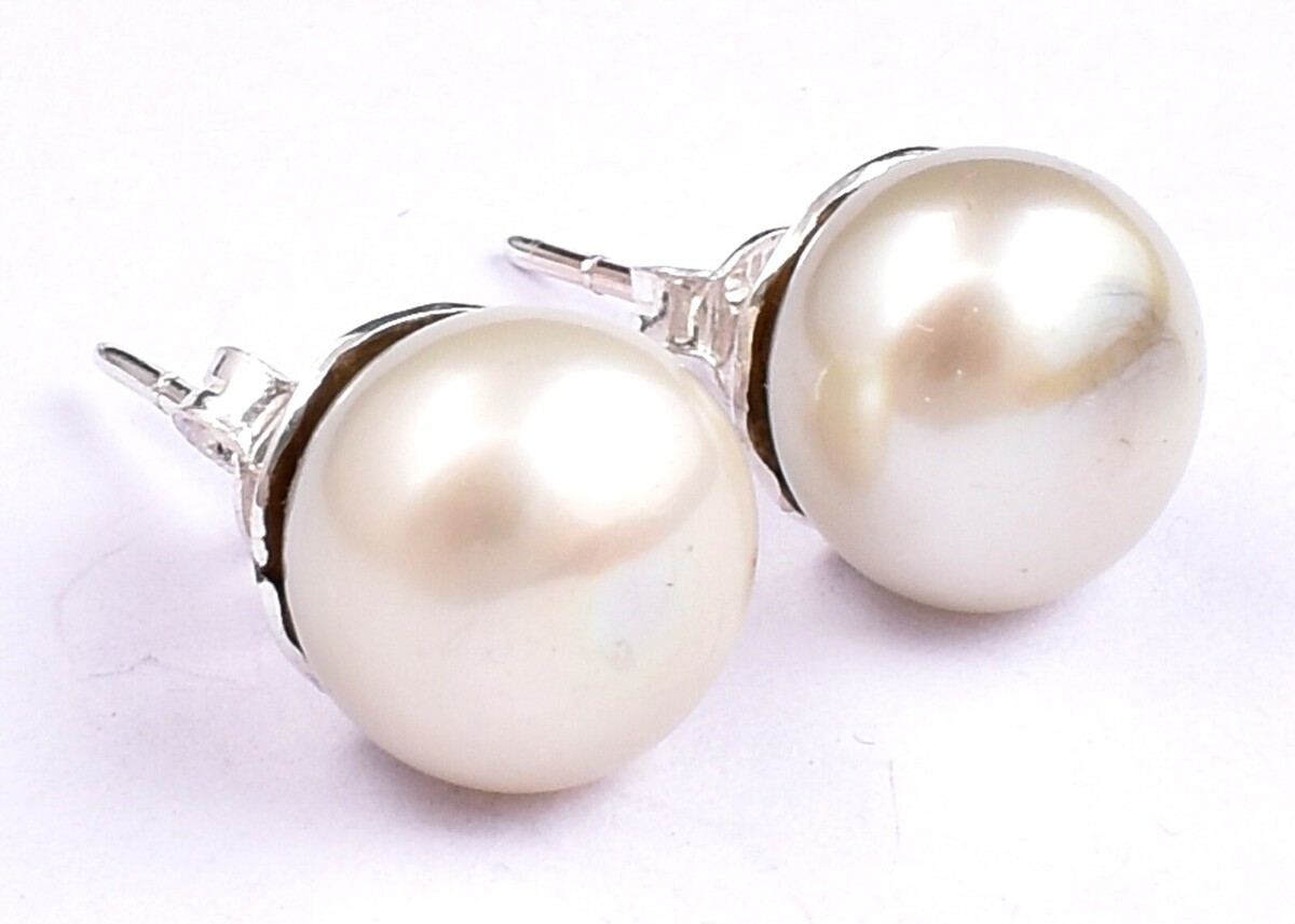 925 Sterling Silver Handmade White Pearl Push-Back Stud Earrings ES-1571