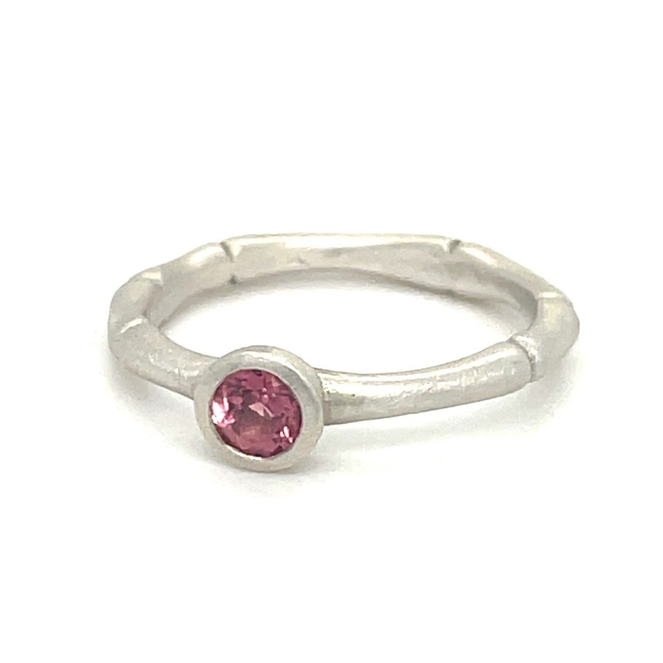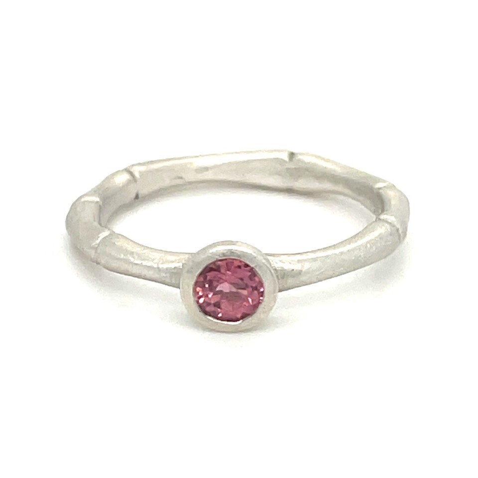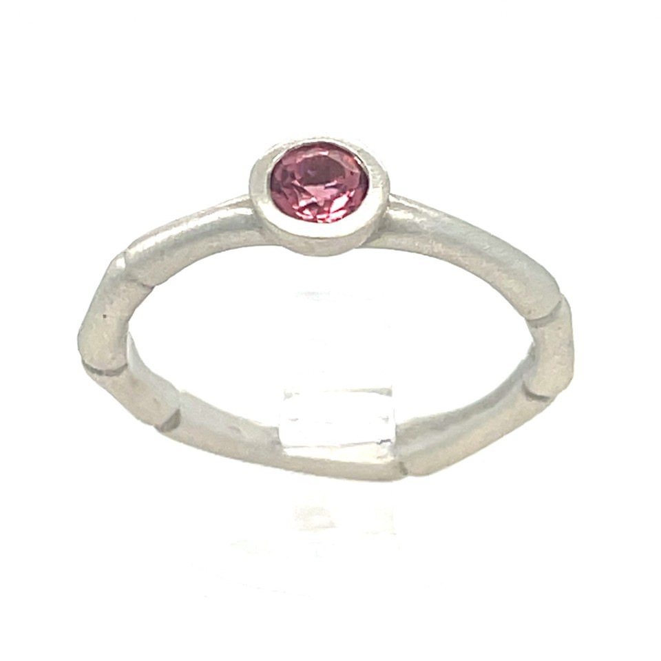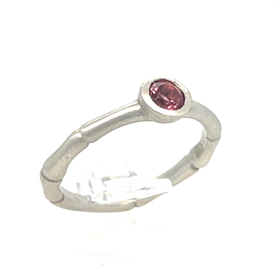 Sterling 18k White Vermeil Bamboo w/ Bezel Set Pink Chrysoberyl Ring Sz 5.75