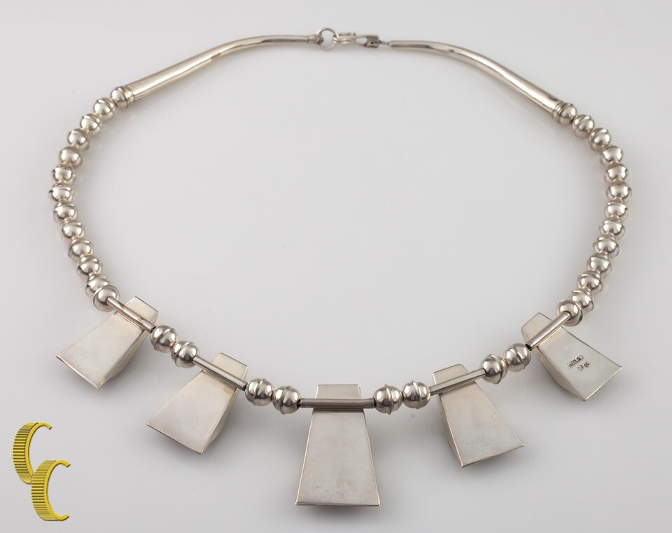 .925 Sterling Silver & Turquoise 'Stair" Necklace