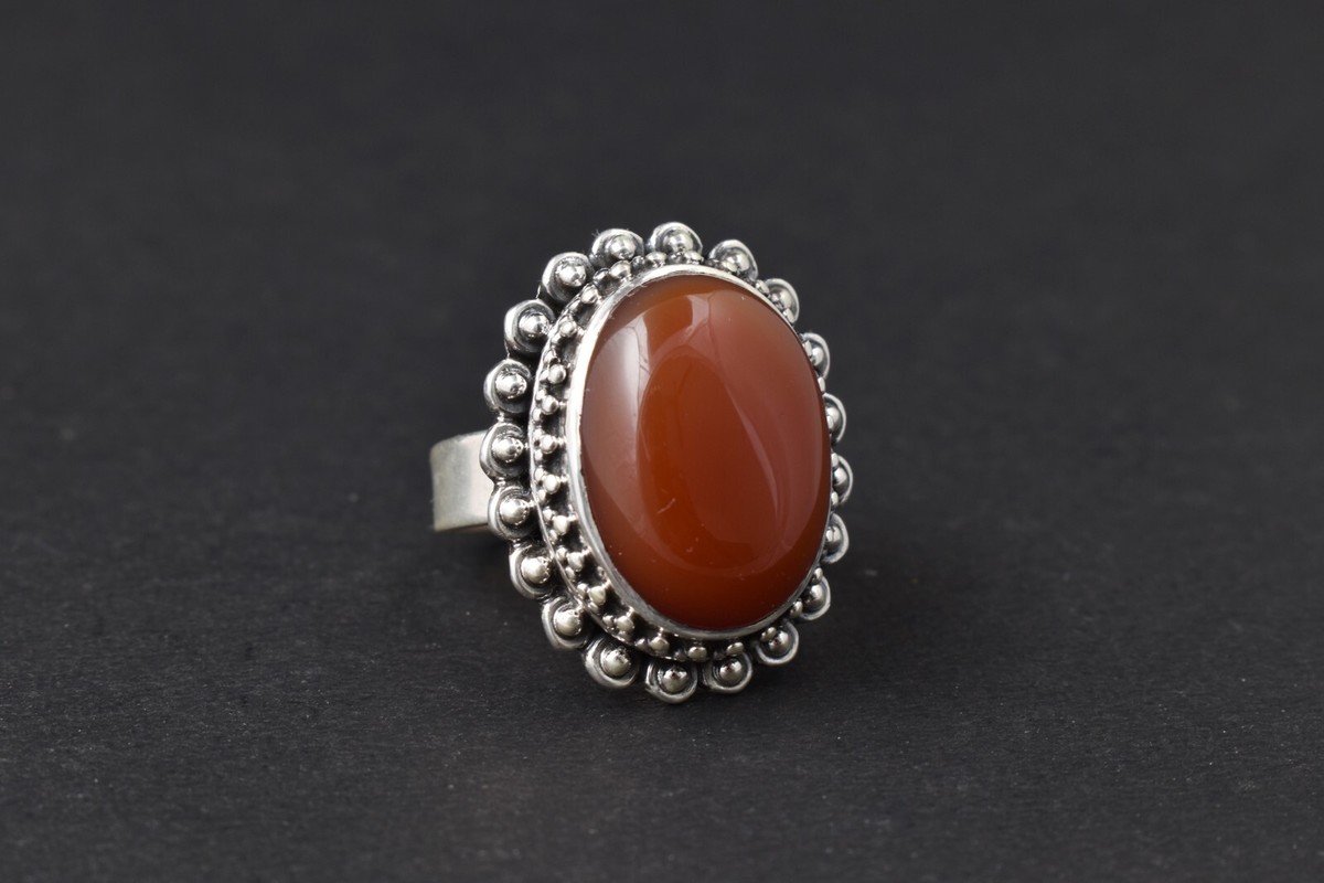 Bague femme en argent 925 pierre de cornaline fait main en argent / or rose /...