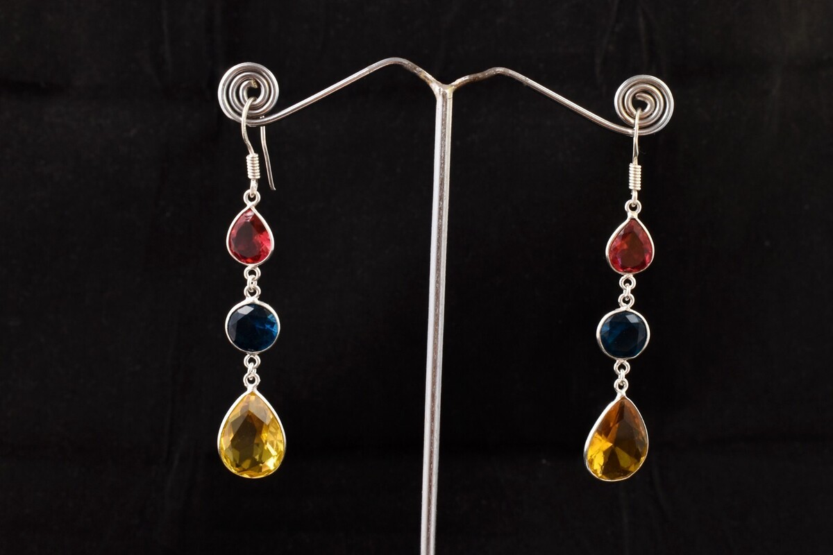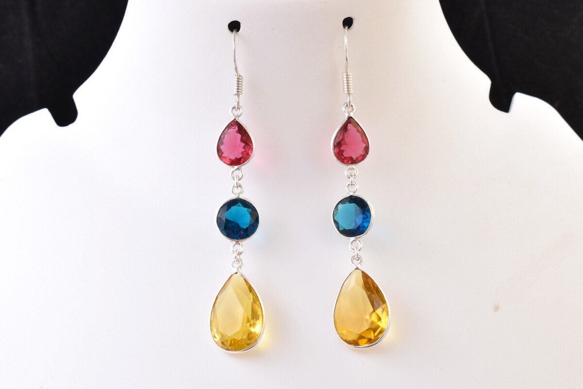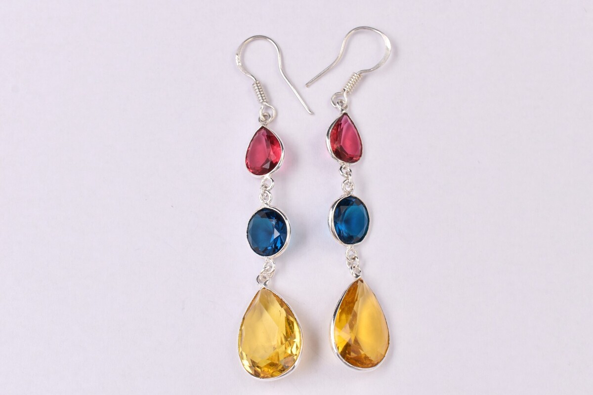 Boucles d'oreilles vintage femme en argent 925 fait main citrine bleu...