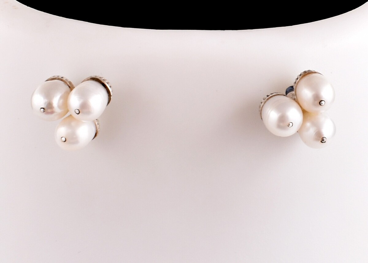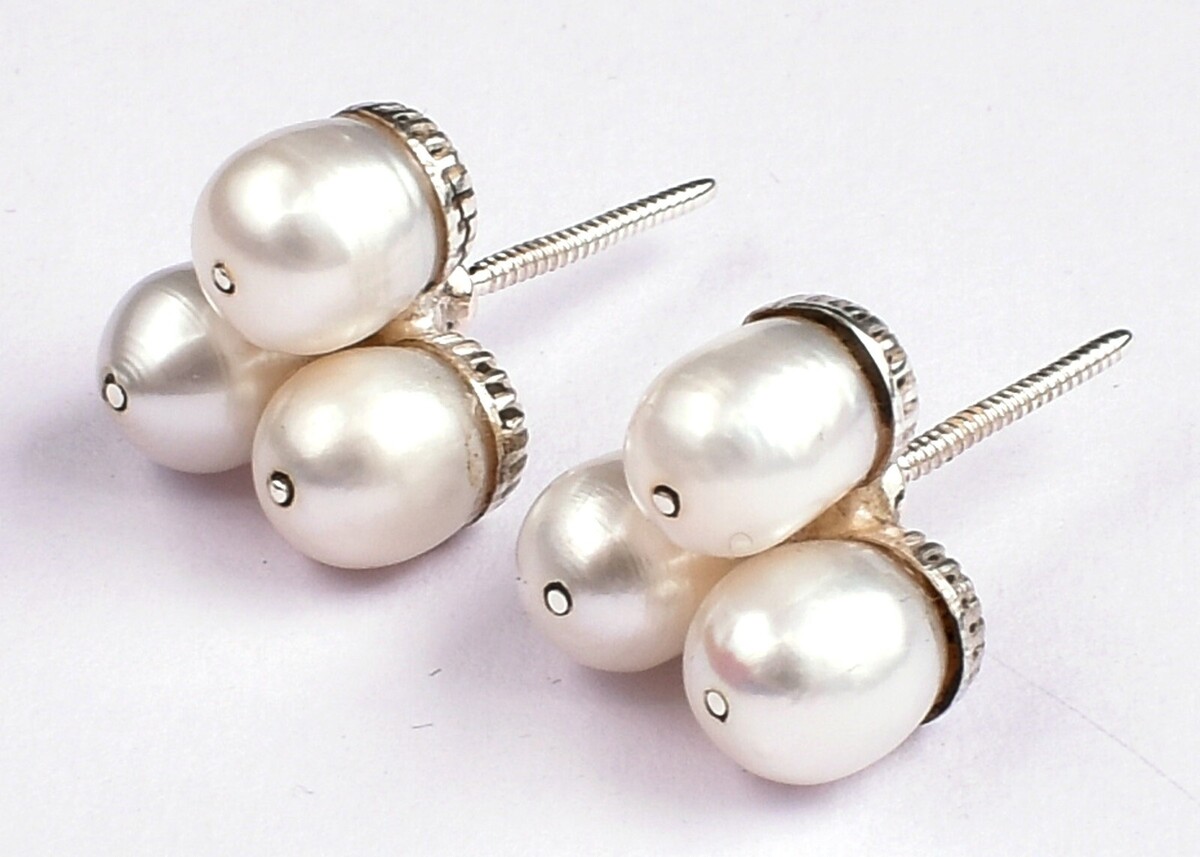 Orecchini a perno in argento sterling 925 fatti a mano con perle bianche ES-1579