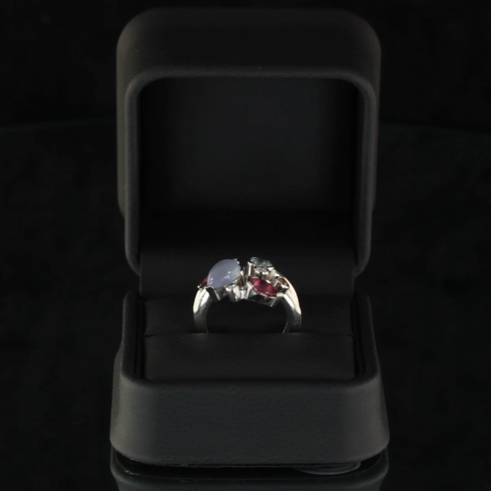 Gorgeous Unique Cartier Ring. The Meli Melo design features variously polished and faceted gemstones bezel-set in 950 platinum.