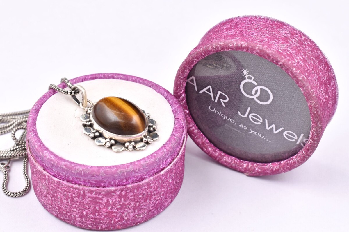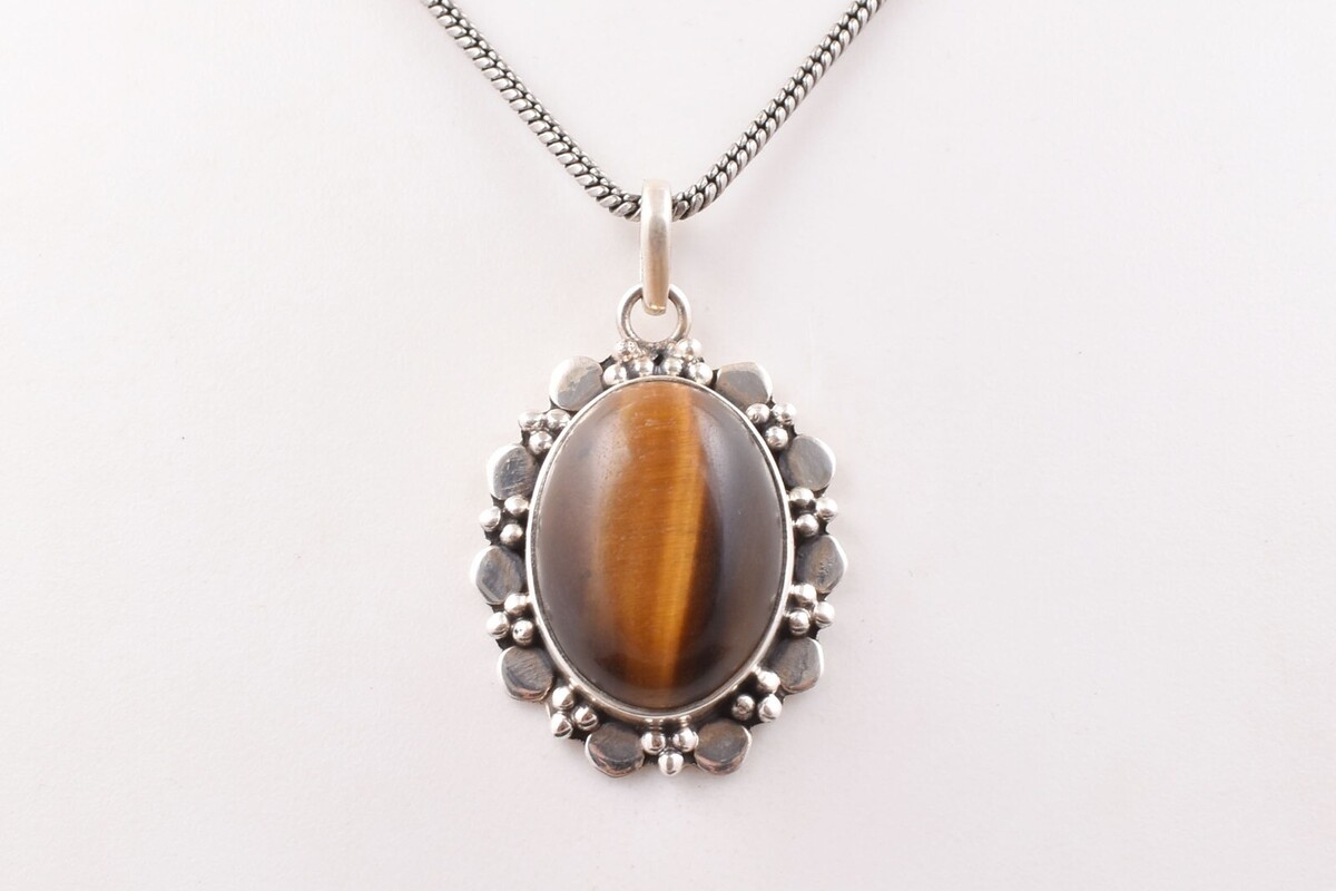 Collana con ciondolo in argento sterling 925 occhio di tigre fatta a mano...