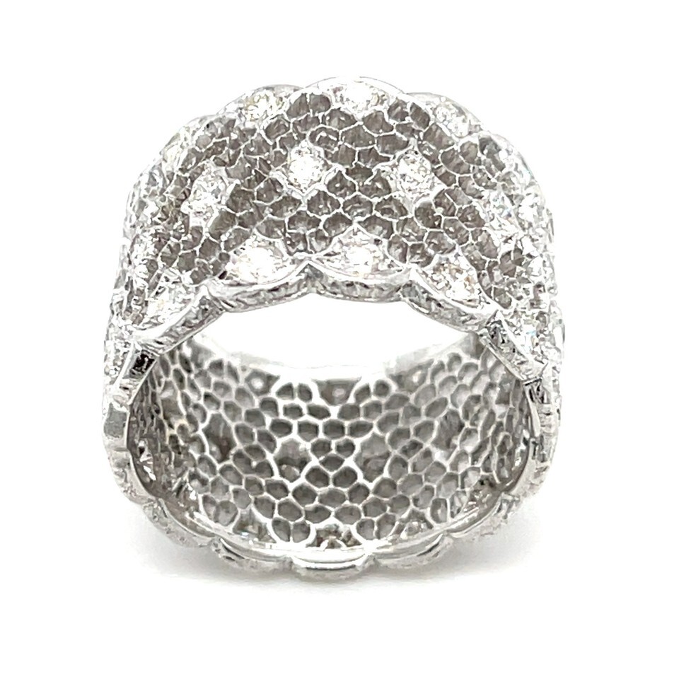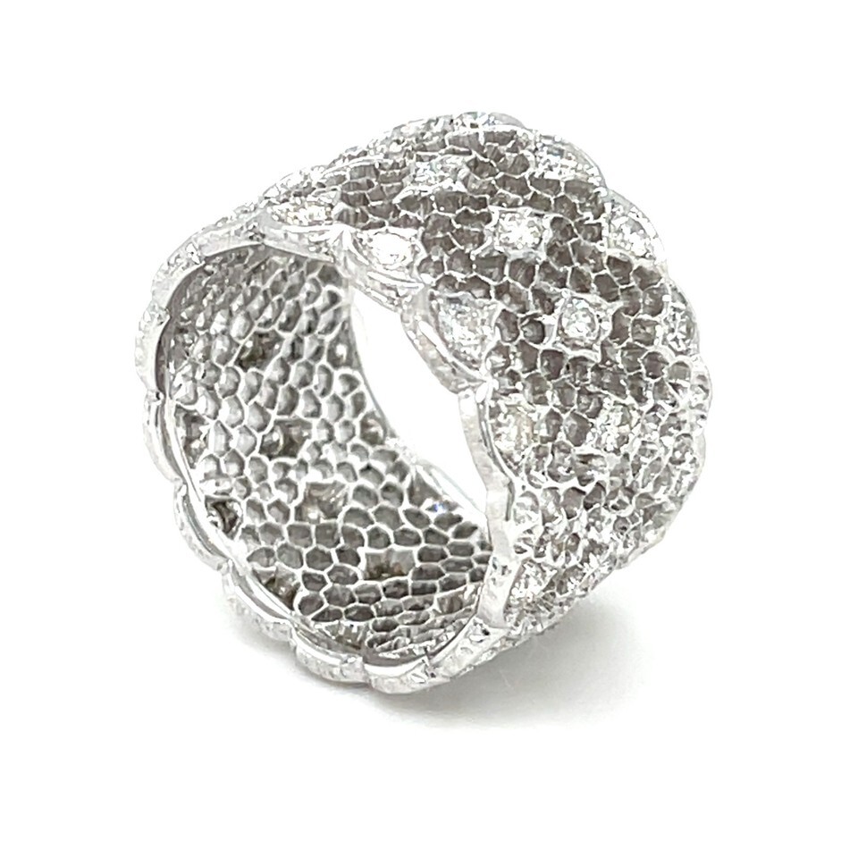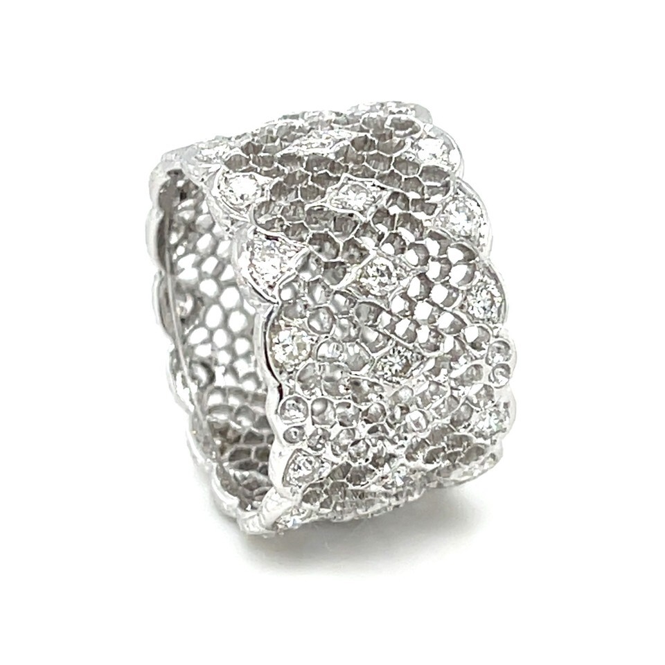 Authenticity Guarantee Buccellati 18k White Gold Tulle Wide Band Ring with D...