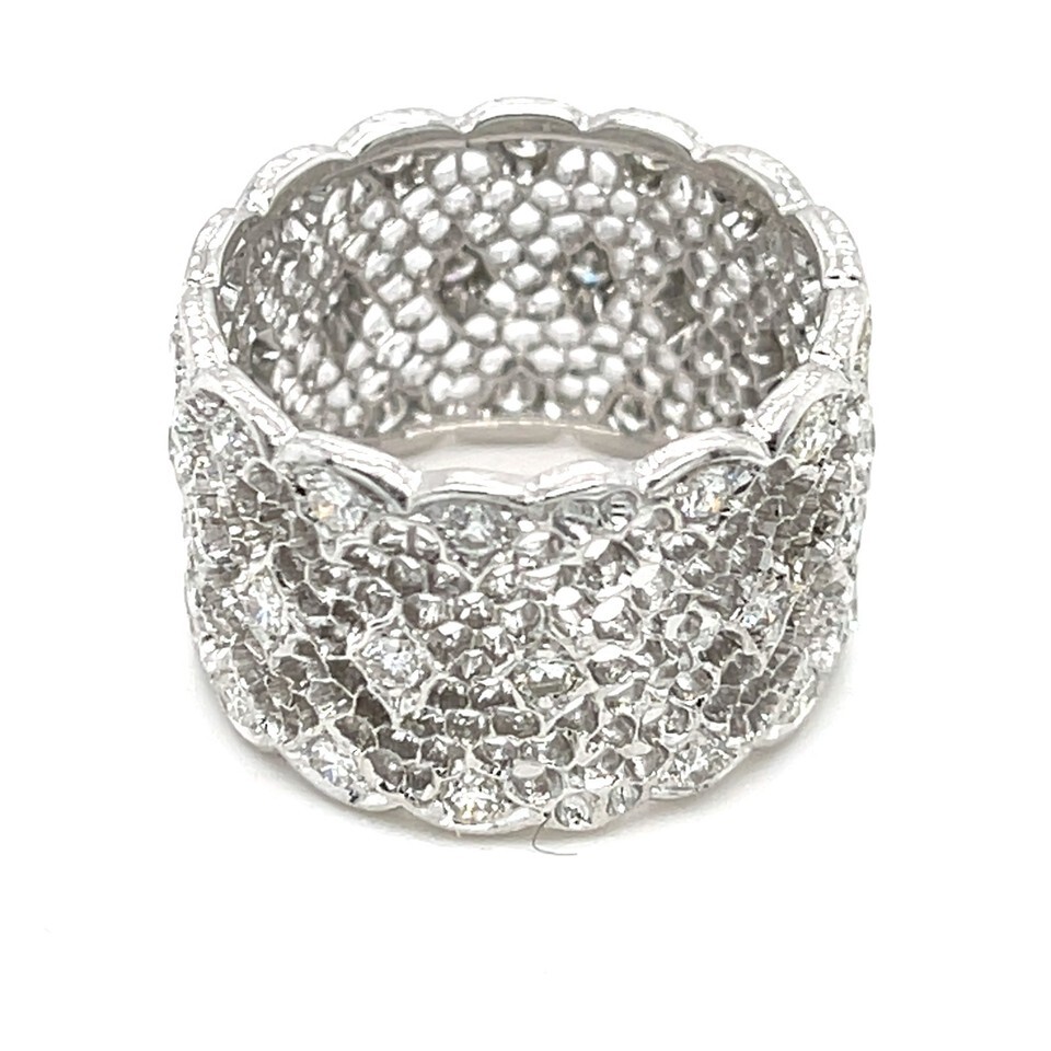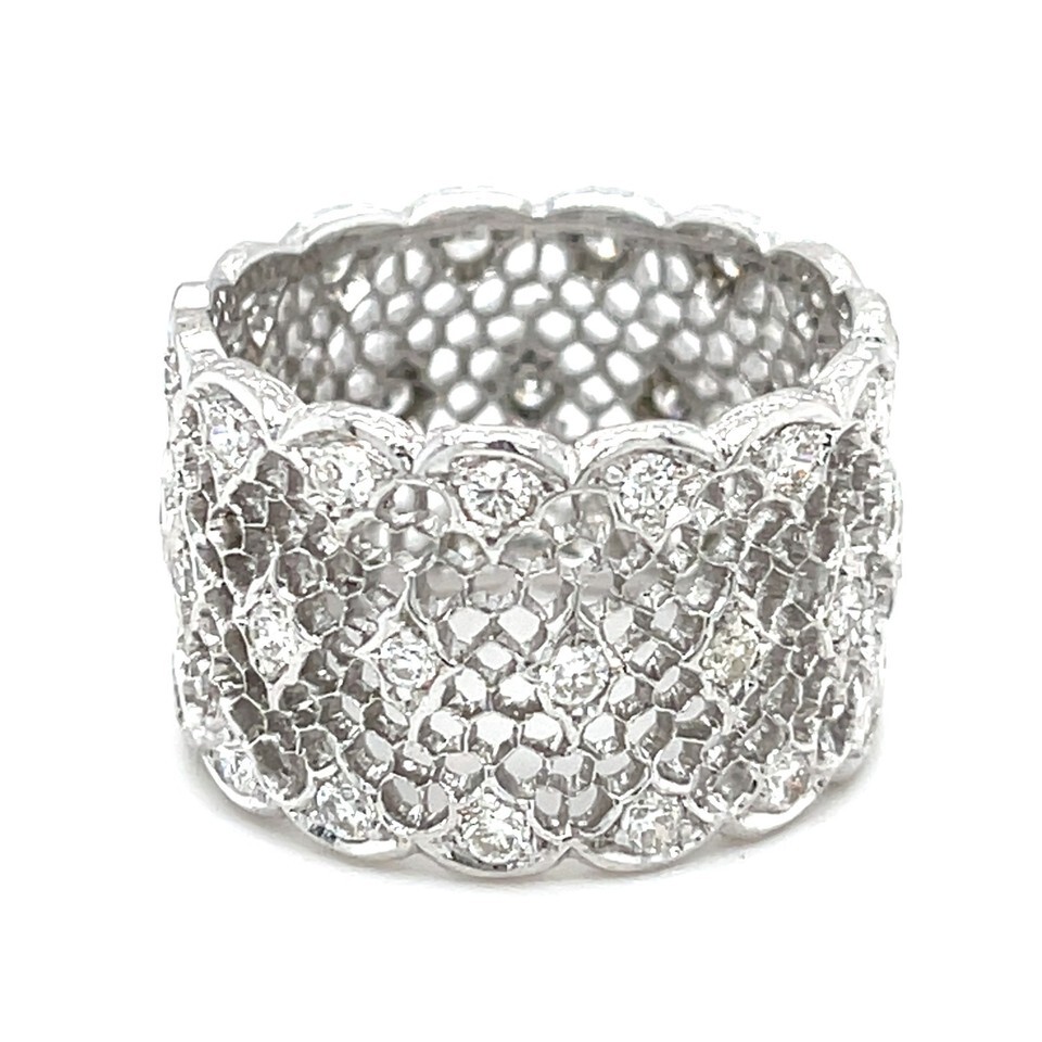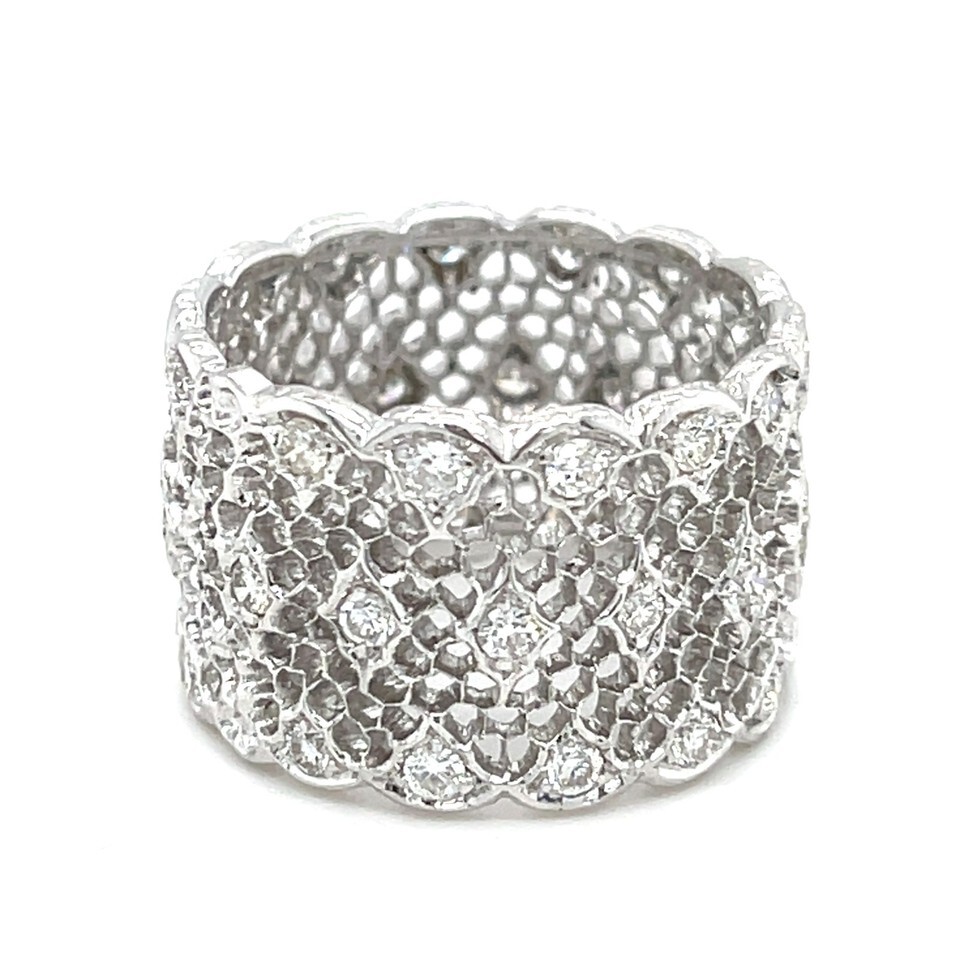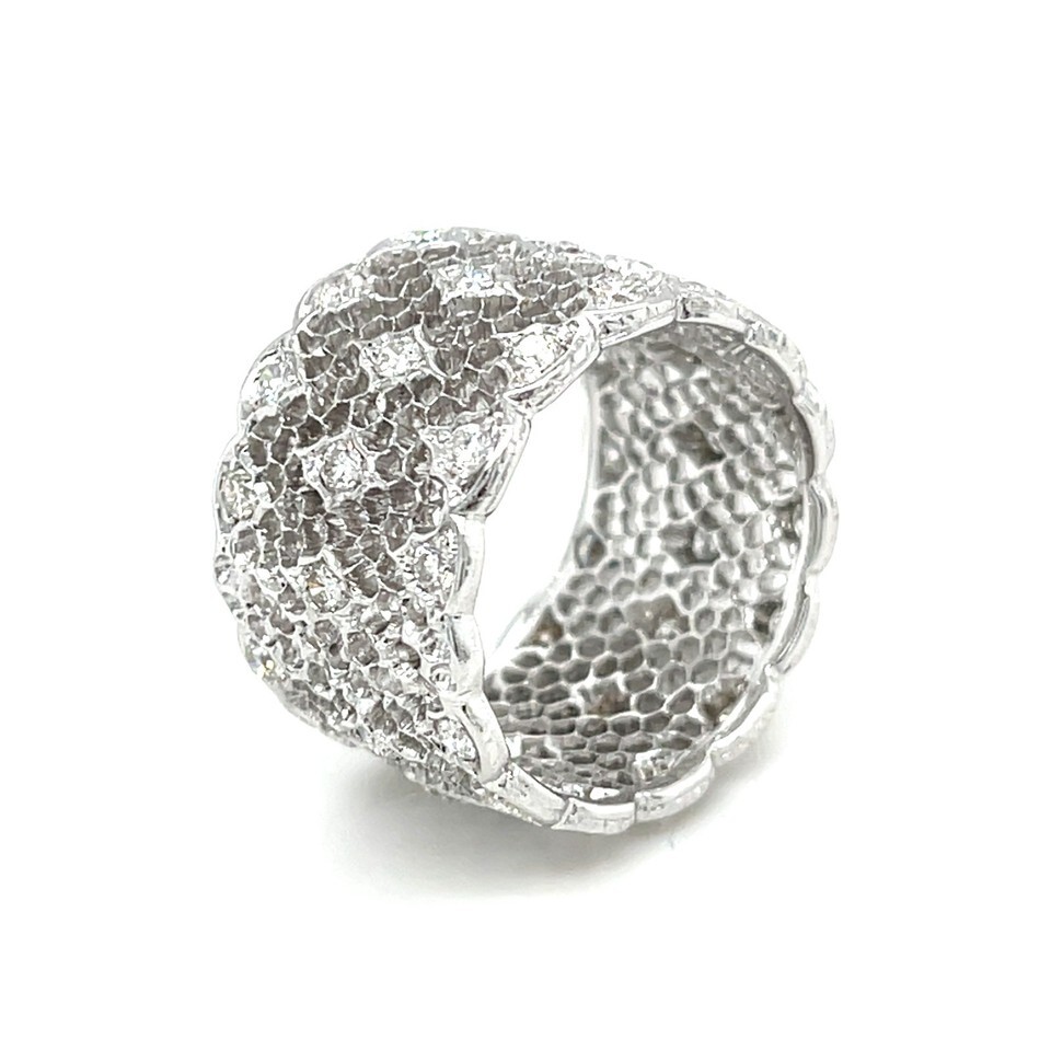 Authenticity Guarantee Buccellati 18k White Gold Tulle Wide Band Ring with D...