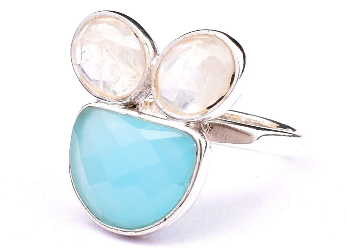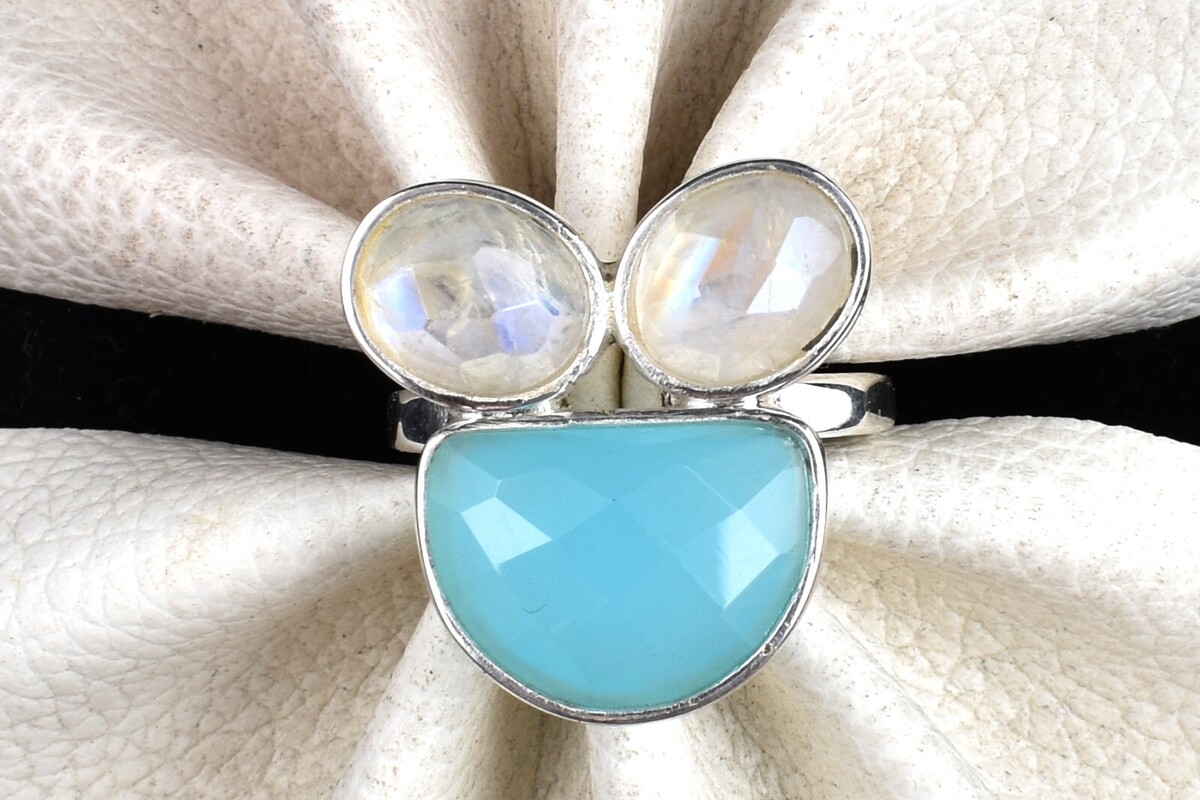Bague en argent sterling 925 pierre de lune et pierre précieuse calcédoine...