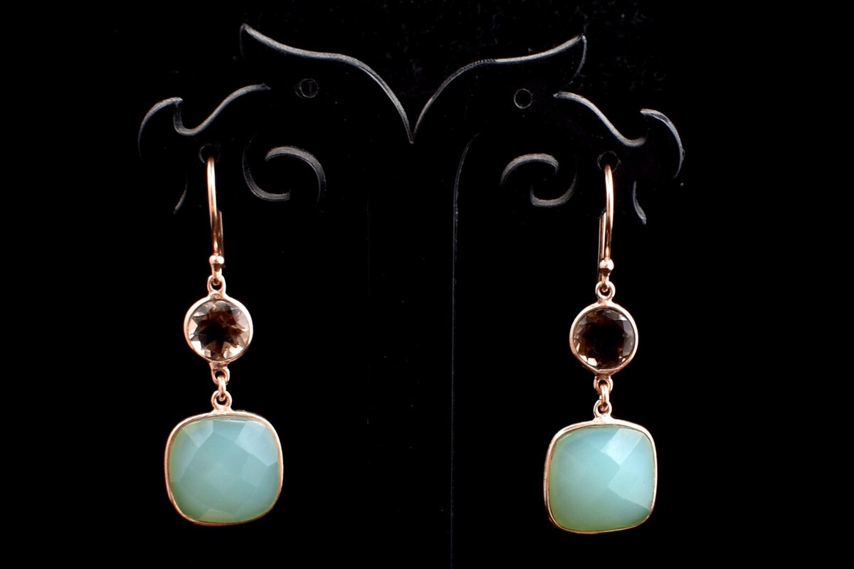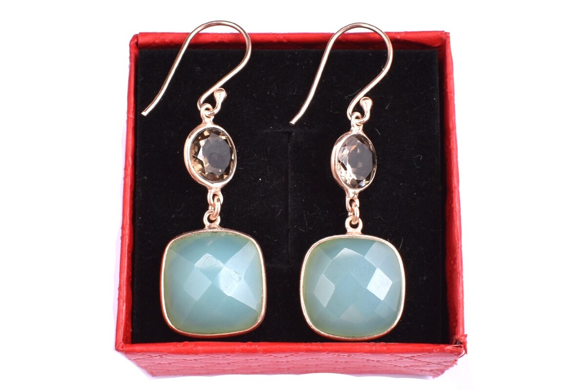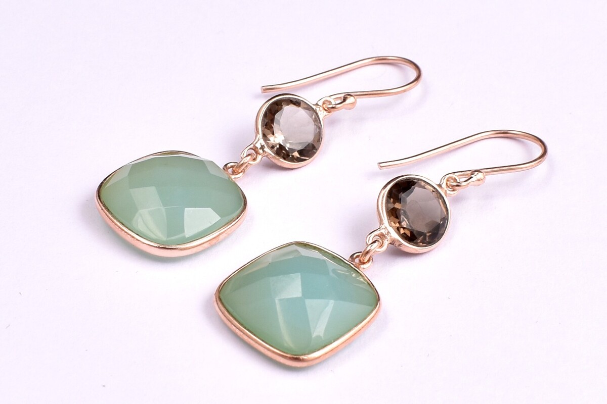 Boucles d'oreilles pendantes faites à la main en argent sterling 925 pierre...